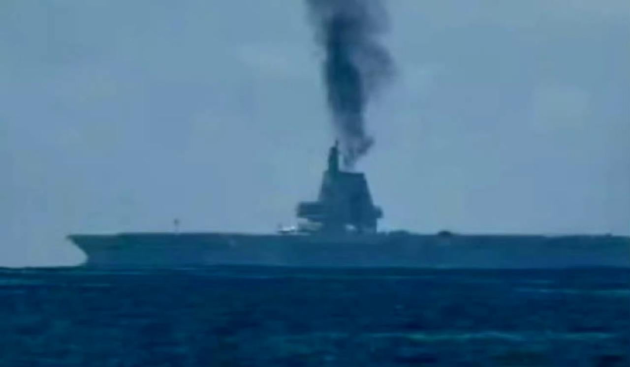 闽渔18号生火做饭了吗?炊烟袅袅的!这外网发的图片果然不一样[白眼][白眼]。搞不好以为鹅母库涅佐夫元帅号来了!这些歪果仁就喜欢自慰[偷笑] 细看甲板上似乎有一架有翼战机,大家帮忙看看是不是?