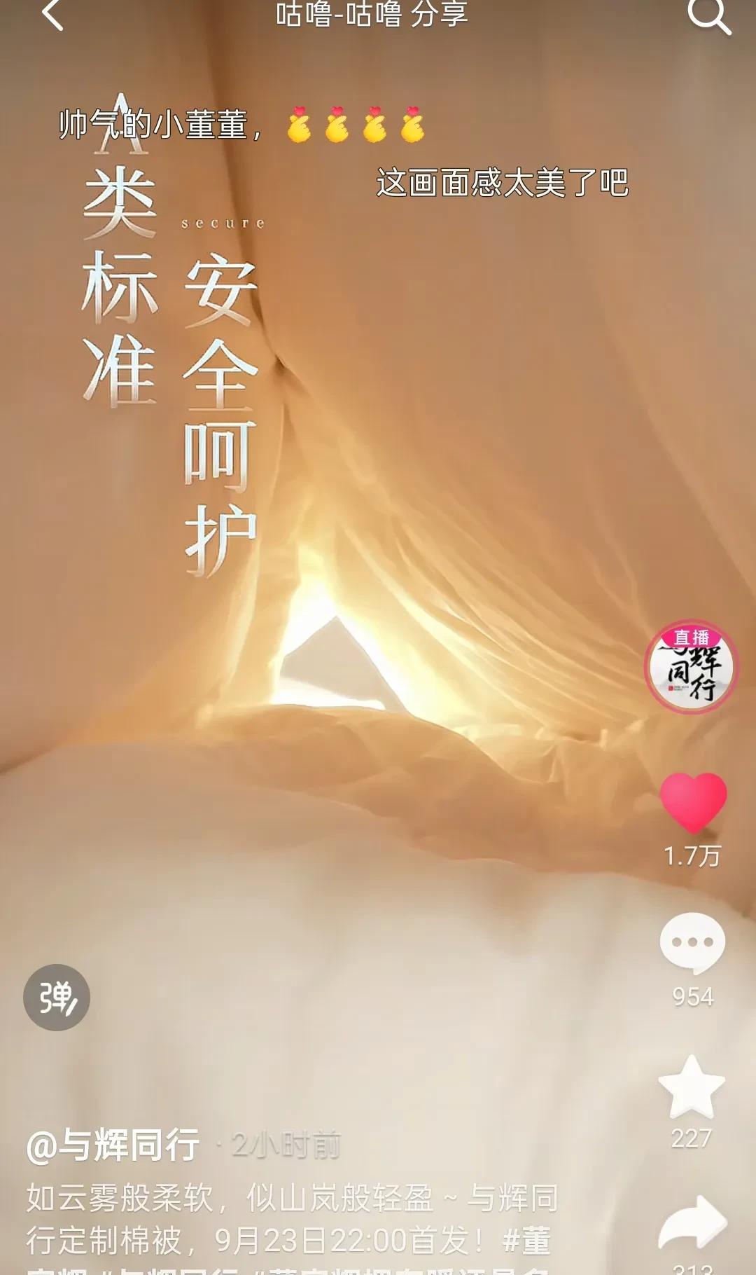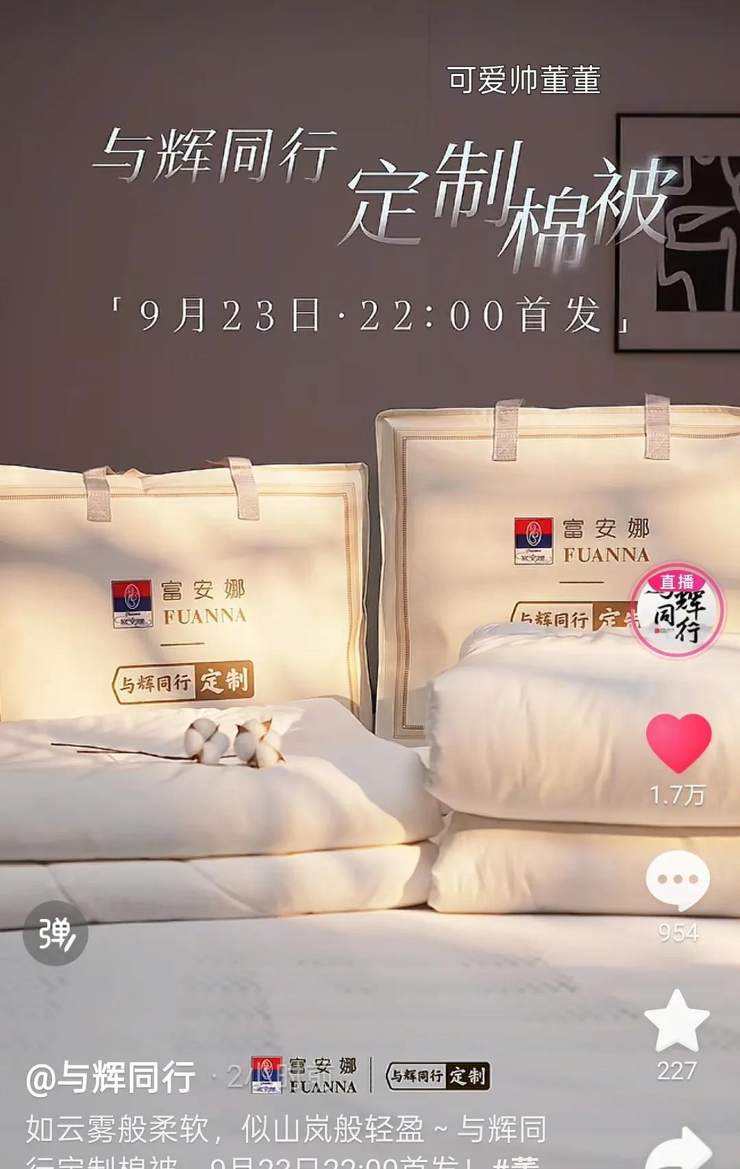 我猜的没错。明天晚上8点宇辉在兰知春序直播间《主创请开麦》节目访谈易中天老师,易中天老师是这部片子的编剧和监制,现在很多动画体裁讲述历史的电影,很受大家欢迎。期待明天晚上8点的访谈。 访谈结束宇辉就回到与辉同行直播间首发与辉同行定制款四件套,合作厂家是富安娜。宇辉选的合作厂家都很靠谱,之前给贵州捐被子就选的富安娜,宇辉说把最好的给他们。看到与辉同行定制就有一种高级感。 25号中午12点到下午4点是海鲜专场,不知道去哪里溯源? 今天早餐“月满九州”月饼第一盒的最后一块,流心月饼,切开就一直竖着放,流心太满了,真往外涌啊,一口下去太满足了。 丈母娘的月饼盒技能大赛还在持续进行,镶金带银的越来越卷了,我这种手残党只能点赞,后面定制产品越来越多,让他们尽情发挥吧!