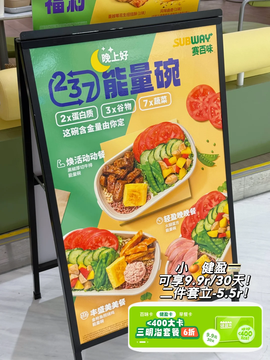 连续6天只吃赛百味是什么感觉, 今天让我这个赛门老粉帮你们总结一下他们家的237能量碗怎么样 这个系列237能量碗指的就是每款里面都搭配了至少2️⃣份蛋白质, 3️⃣种谷物指的是搭配的燕麦米、红米、还有白藜麦,吃起来软软糯糯, 7️⃣种蔬菜的组合,除了新鲜的黄瓜、番茄、生菜 ,还有烤的红甜椒、荷兰豆、杏鲍菇、黄萝卜 营养确实十分均衡,喜欢的话还可以选择自己diy!再加上洋葱、酸黄瓜等甚至可以15+种!记得码住:在小🍊开健盈💳还可立享9.9r/30天!二件套➖5.5r哦! 这次3大系列,一共有6款能量碗,看看你最 pick哪一碗! 焕活动动餐 ✅香烤牛火鸡胸:红白双肉搭配蛋谷蔬超全组合,主打营养十分均衡 ✅黑椒厚切牛排:牛排爱好者的天堂,搭配黑椒酱一口大满足 丰盛美美餐 ✅金枪鱼照烧鸡:三重优质蛋白组合,每一口都超有料 ✅原切炙烤鸡腿排:一整块多汁的鸡腿排搭配厚厚的蛋方,饱足感拉满 轻ying晚晚餐 ✅火腿蛋方:晚间轻食的不二之选,吃起来很轻松,女生一个食美味轻负担 ✅缤纷双蛋:不想吃肉又可以营养均衡搭配组合,完美匹配我的需求 总结一下:赛百味这几款能量碗,营养搭配非常均衡,不管是健身管理期,还是健康饮食的, 还是正在愁晚上吃啥不长肉的,都可以试试这个系列!