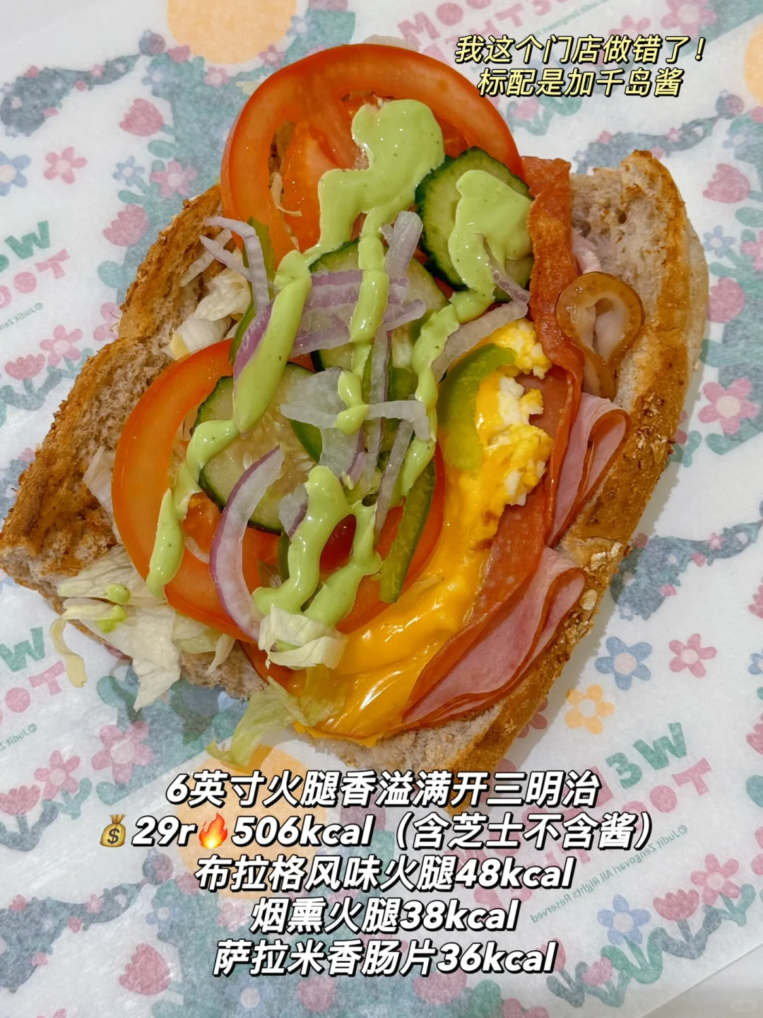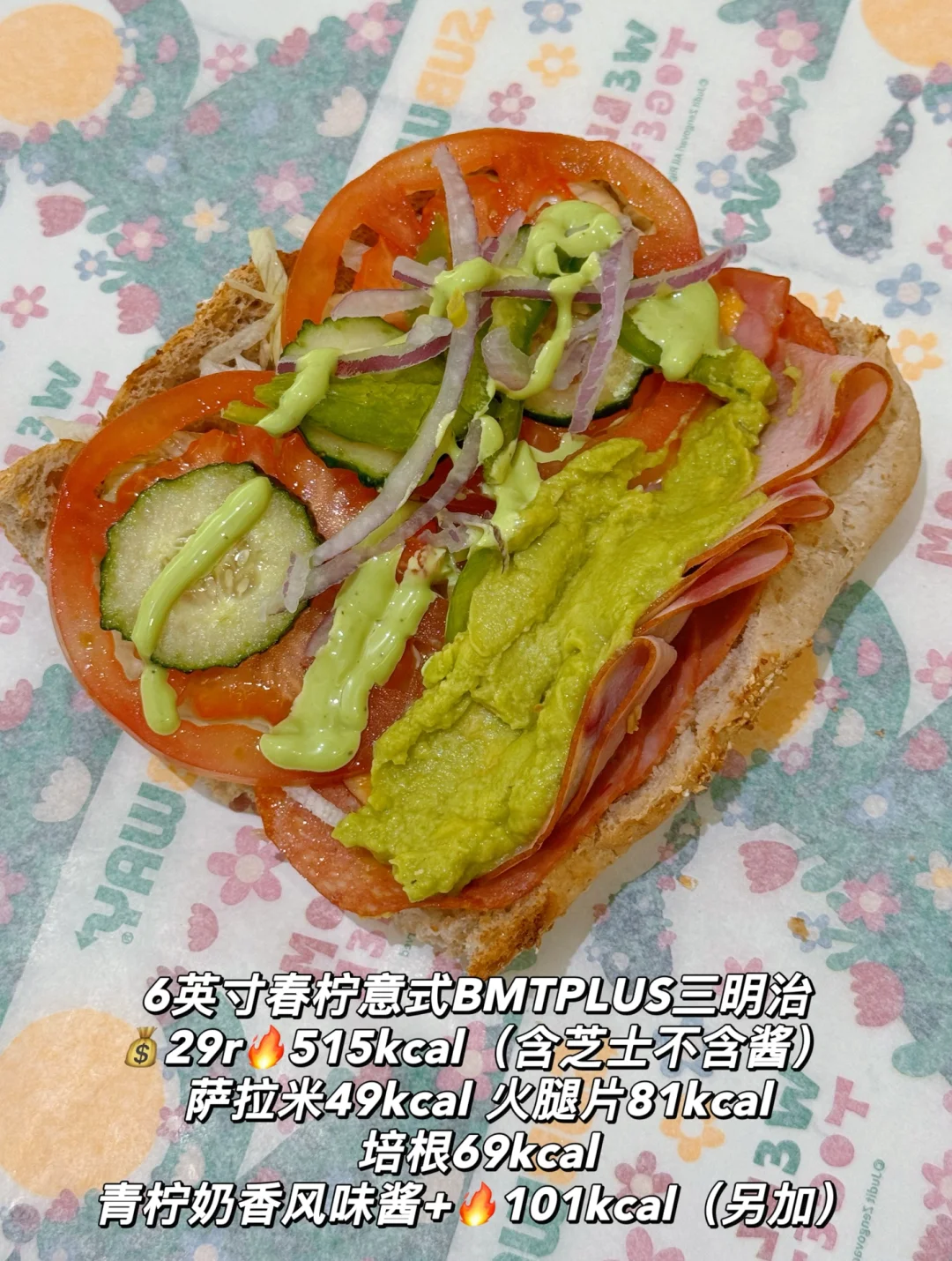 布拉格火腿有点肥! 酱算是比较清爽的,可是不太搭! Plus肉是真多! subway 赛百味 赛百味新品 赛百味热量 热量 热量测评 不肉 新品 火腿香溢满开三明治 香烤牛火火百汇三明治 春柠意式BMTPLUS三明治 布拉格风味火腿牛油果三明治 牛油果照烧鸡三明治 原切海苔鳕鱼块 樱桃亚麻籽曲奇 赛赛烤薯饼