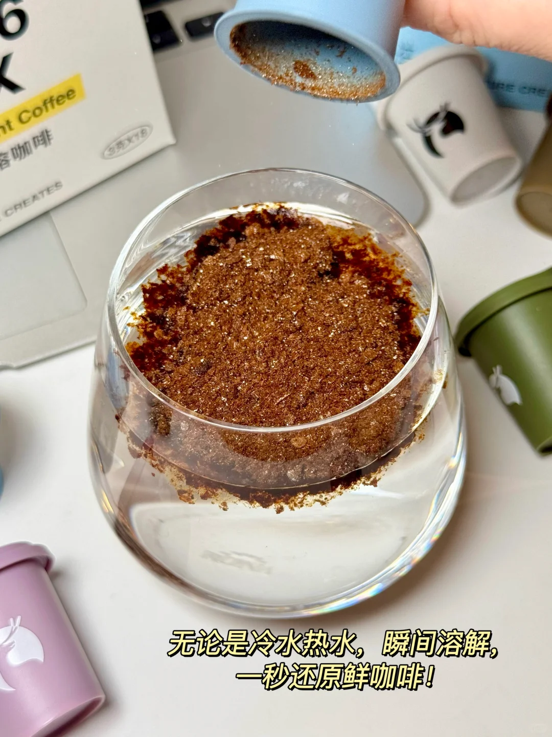 喝的时候无论是冷水热水一冲,瞬间溶解💦,一秒还原鲜咖啡,
