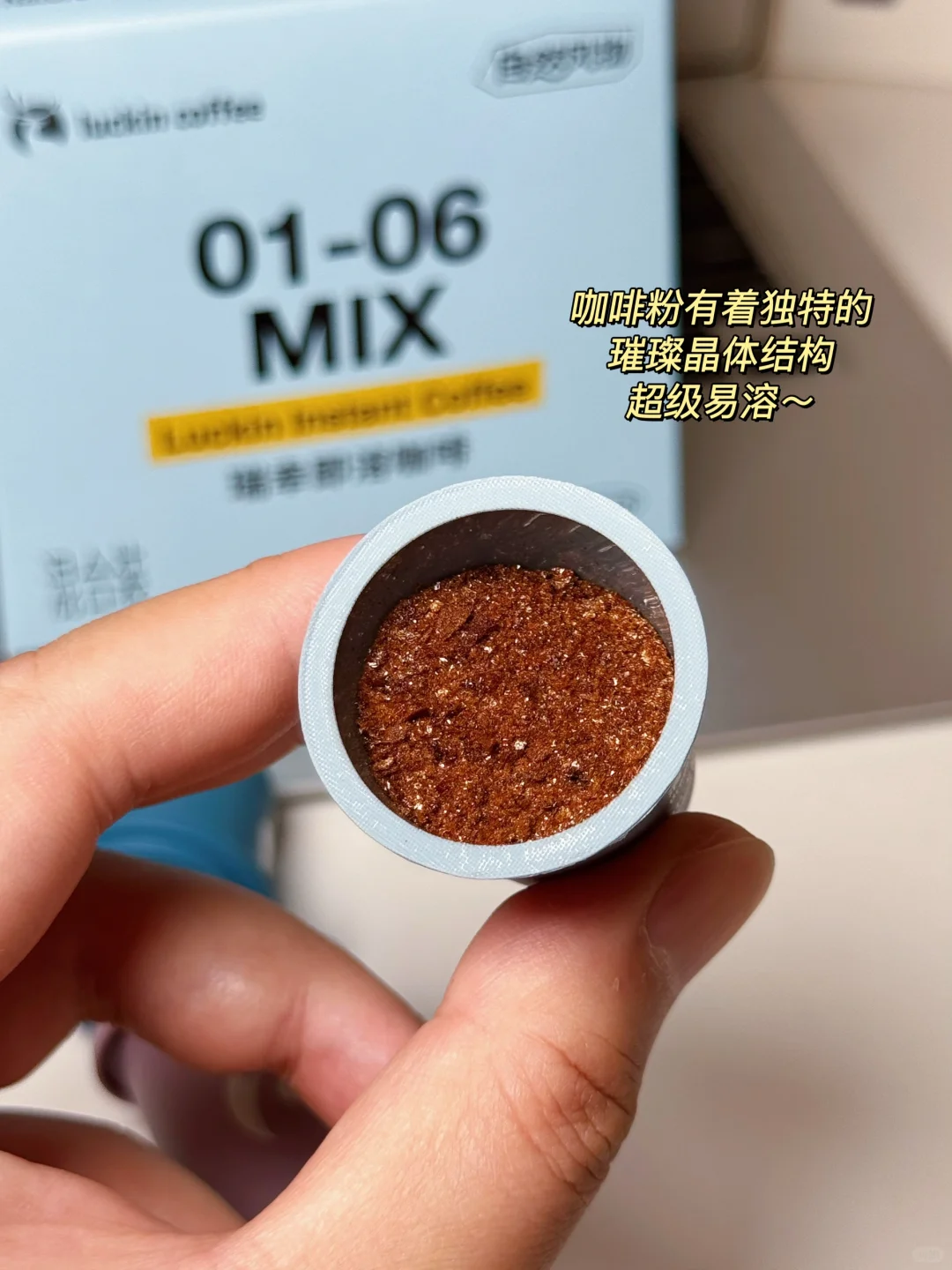 而且咖啡粉还有着独特的璀璨晶体结构✨,超级易溶,