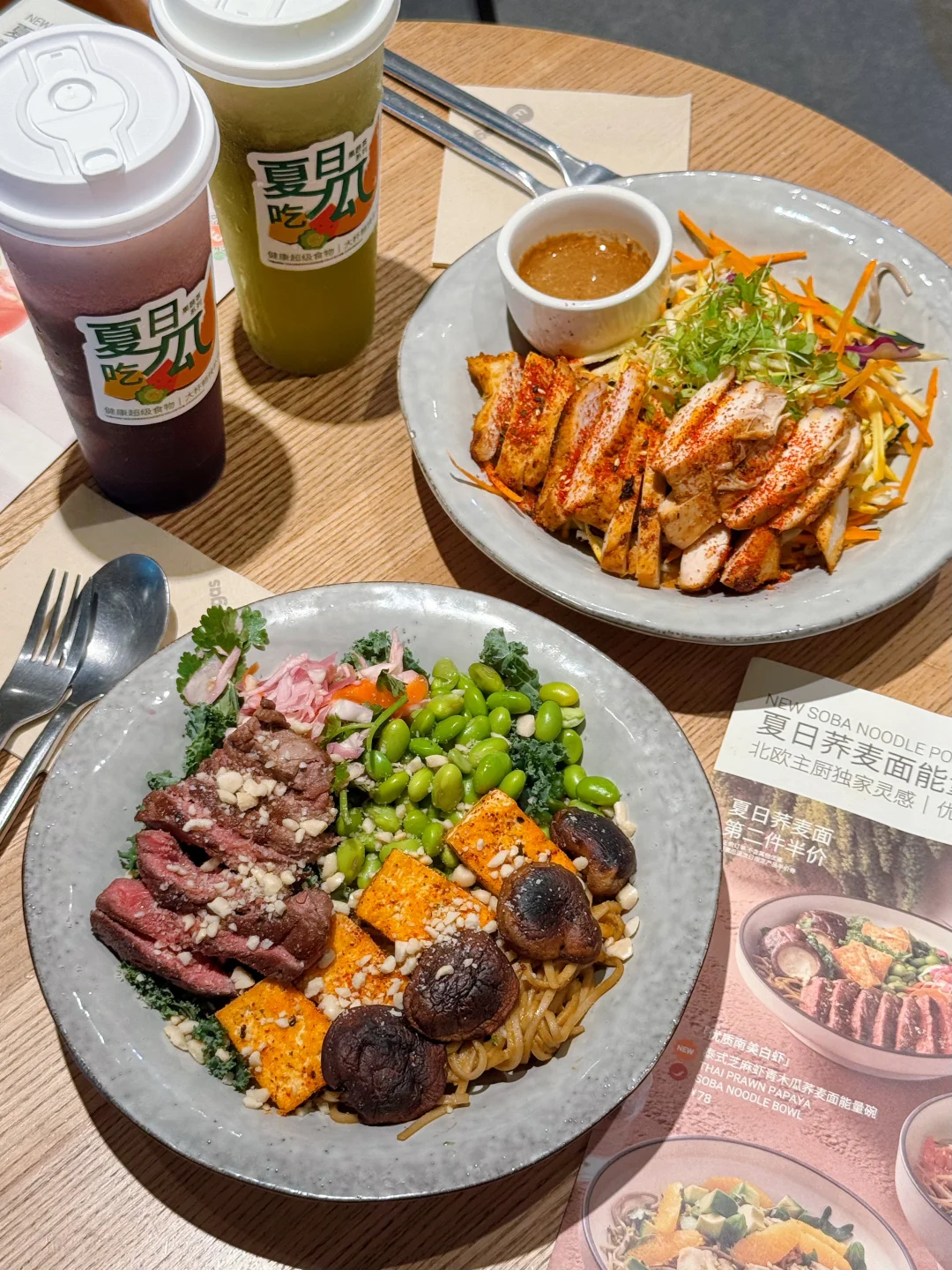 鸡胸肉、牛菲力、南美大白虾全上阵,配着低GI荞麦面和满满蔬菜,好吃不腻还抗饿,夏天吃这口真的太舒服了… 而且现在68元就能吃到,还能拥有一杯新品果蔬茶,这波必须挨个打卡!完整版点单攻略来了,速速码住!