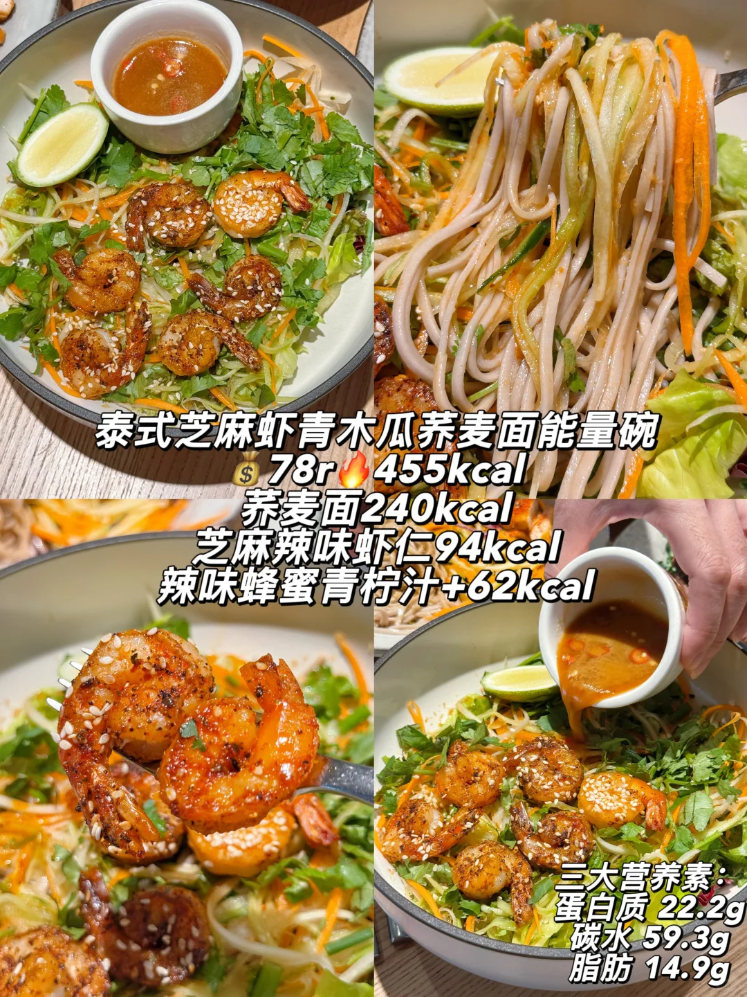 🦐泰式芝麻虾青木瓜荞麦面能量碗