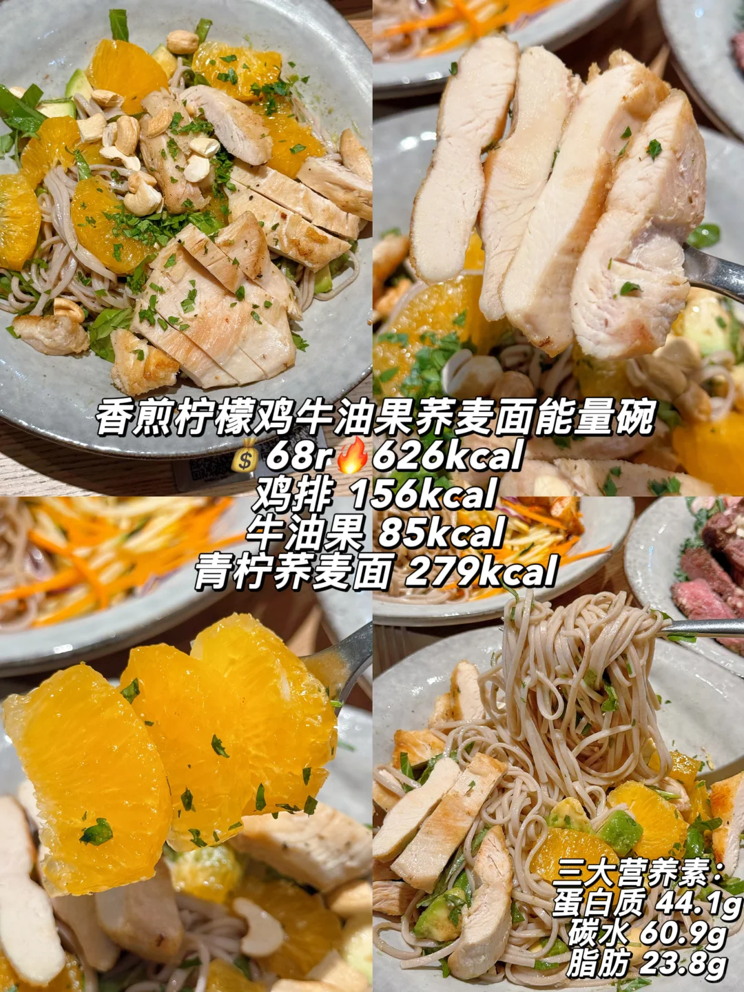 🐔香煎柠檬鸡牛油果荞麦面能量碗