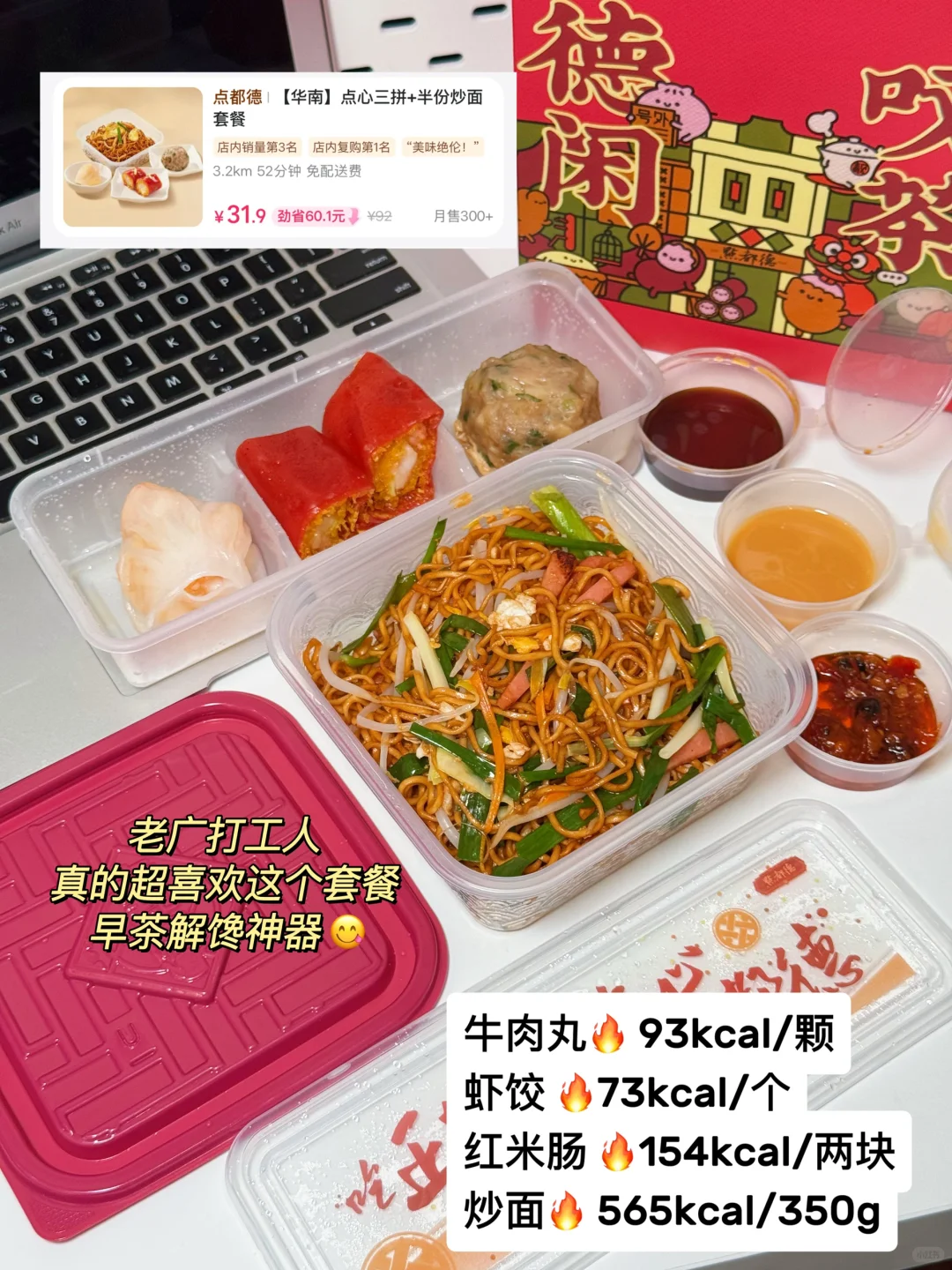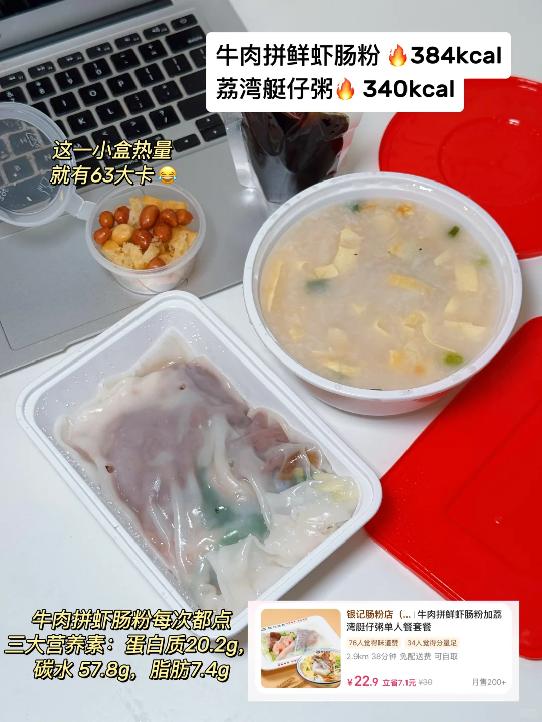 ✅点都德 【点心三拼+半份炒面套餐】 牛肉丸🔥93kcal 虾饺 🔥73kcal 红米肠 🔥154kcal 炒面🔥 565kcal ✅老碗会 【酸汤臊子面+现烤肉夹馍单人套餐】 酸汤臊子面(含汤)🔥634kcal/份 肉夹馍🔥434kcal ✅银记肠粉 【牛肉拼鲜虾肠粉+荔湾艇仔粥单人餐】 牛肉拼鲜虾肠粉🔥366kcal 酱油+24kcal 荔湾艇仔粥🔥 340kcal ✅周成芝螺蛳粉 原味螺狮粉🔥845kcal 汤+🔥187kcal 最近每天真的超忙,本牛马基本都没出去外食,都是用神抢手解决的工作餐, 只能给大家来上一期外卖热量点单攻略了,全部都是大品牌,全国连锁大家都可以参考起来! 而且神抢手里面都是品质好、精选的餐厅~大家看到喜欢的套餐还可以囤卷,价格也很划算,多囤几份,想吃的时候就可以吃,如果大家爱看我还真可以一直给大家更新神抢手的热量攻略