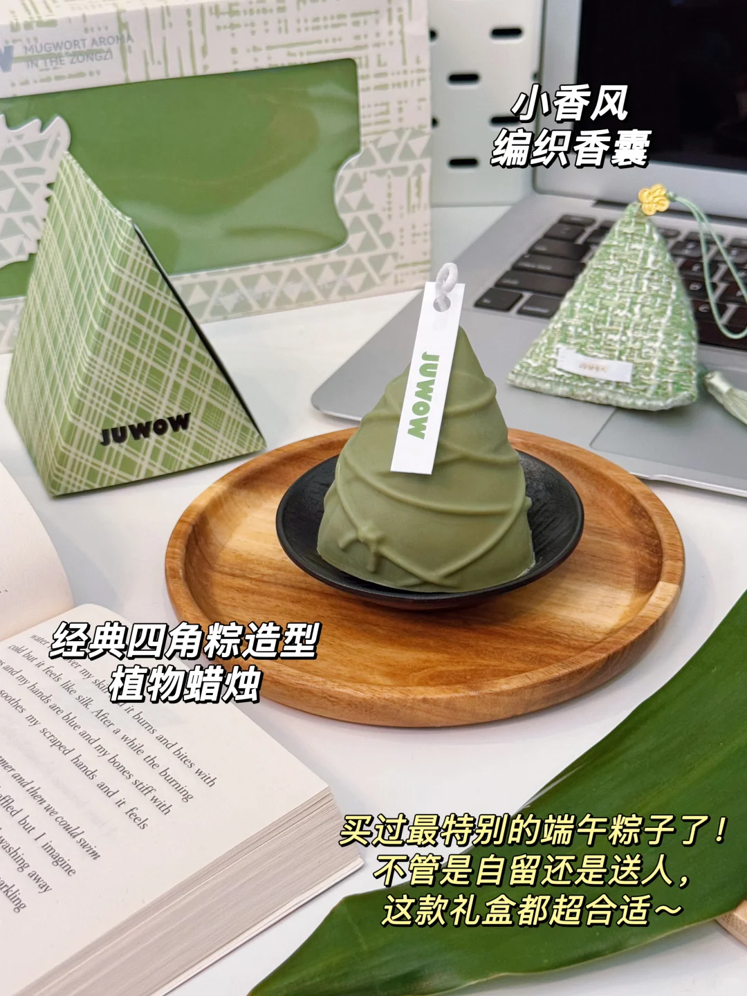 把经典四角粽造型复刻成植物蜡烛,燃烧的小火花,把传统与现代的氛围感直接拉满