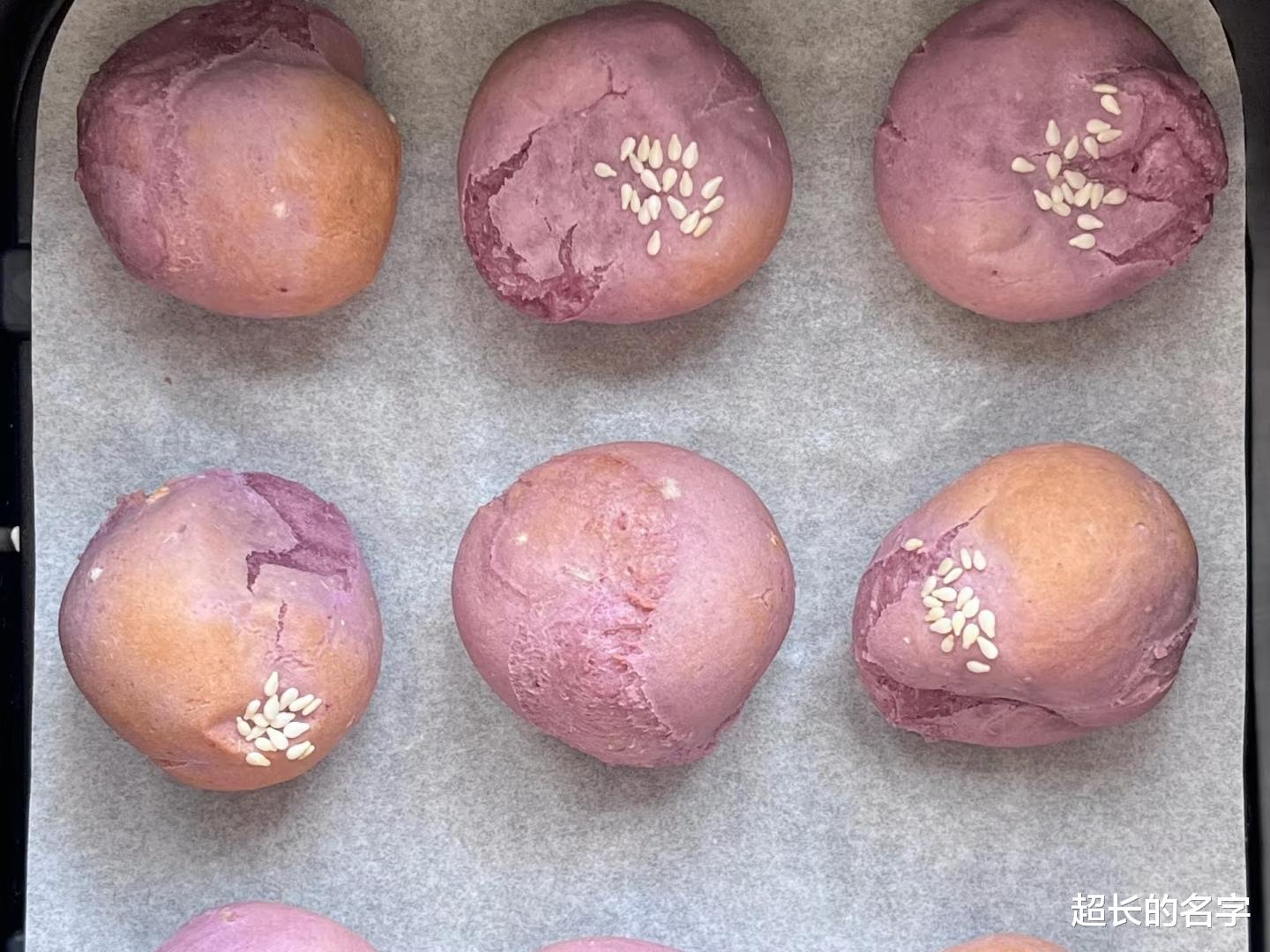 刚烤好的芋泥烤麻薯一定要趁热吃!用手轻轻捏一下,外皮带着点烤过的脆感,里面的芋泥绵到入口即化,甜而不腻;藏在中间的麻薯更是绝了,咬开瞬间就能拉出长长的丝,软乎乎、QQ弹弹的,还带着奶香味,和芋泥的香甜搭在一起,口感层次超丰富——先是表皮的焦香,再是芋泥的绵密,最后是麻薯的软韧,一口下去,三种口感在嘴里碰撞,幸福感直接拉满!