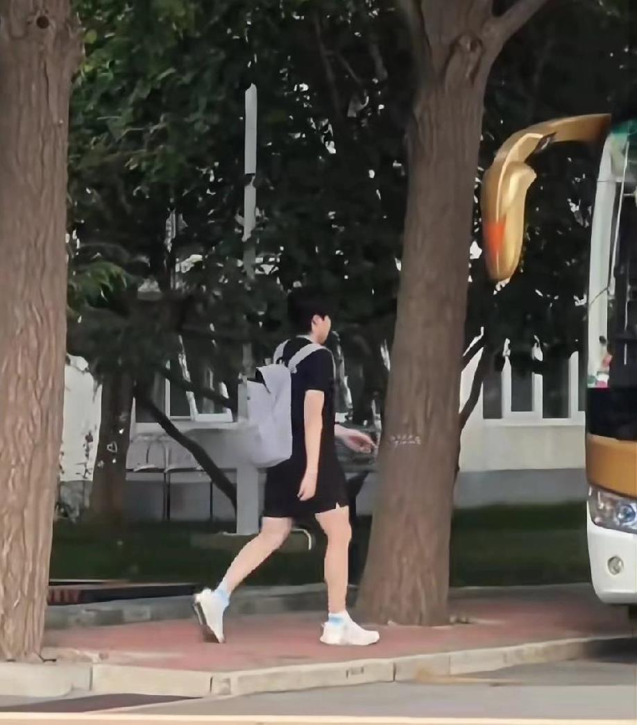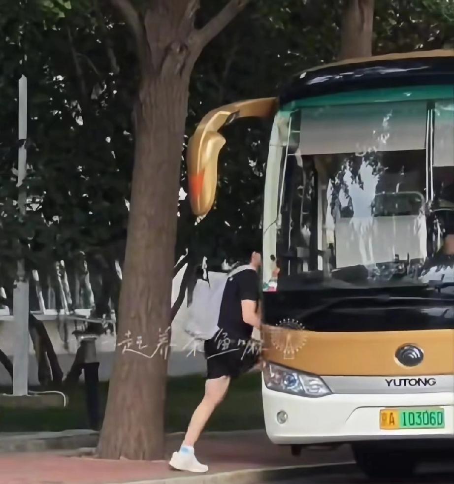 头哥今天下午上训,短衣短裤,不冷吗?背上双肩包上了体总公家车。 9.22头哥训练