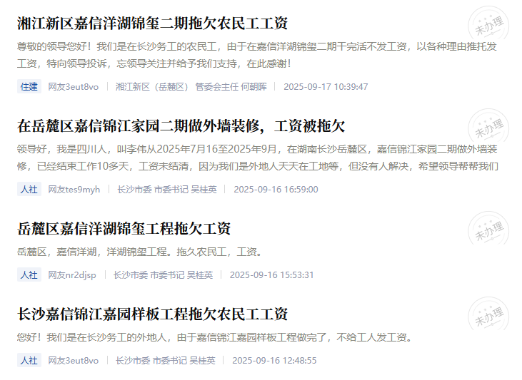 令人担忧的是,嘉信在长沙尚未有大规模住宅的优秀交付案例。近期嘉信开发的其它项目业主却因为交付品质问题在进行维权,而在相关投诉平台上也出现了不少该项目农民工讨薪的投诉,这对嘉信洋湖锦玺的未来交付能力投下了阴影。