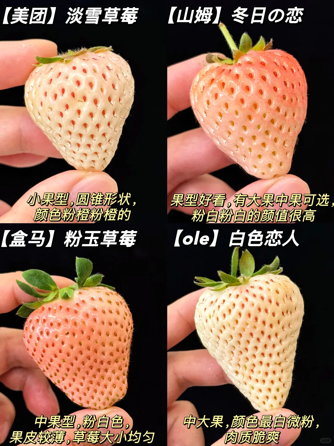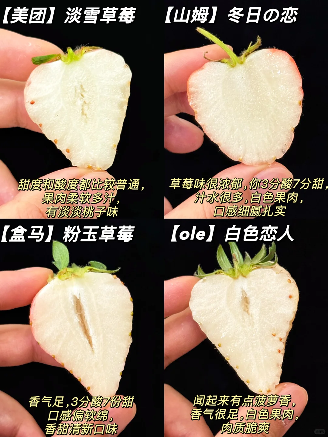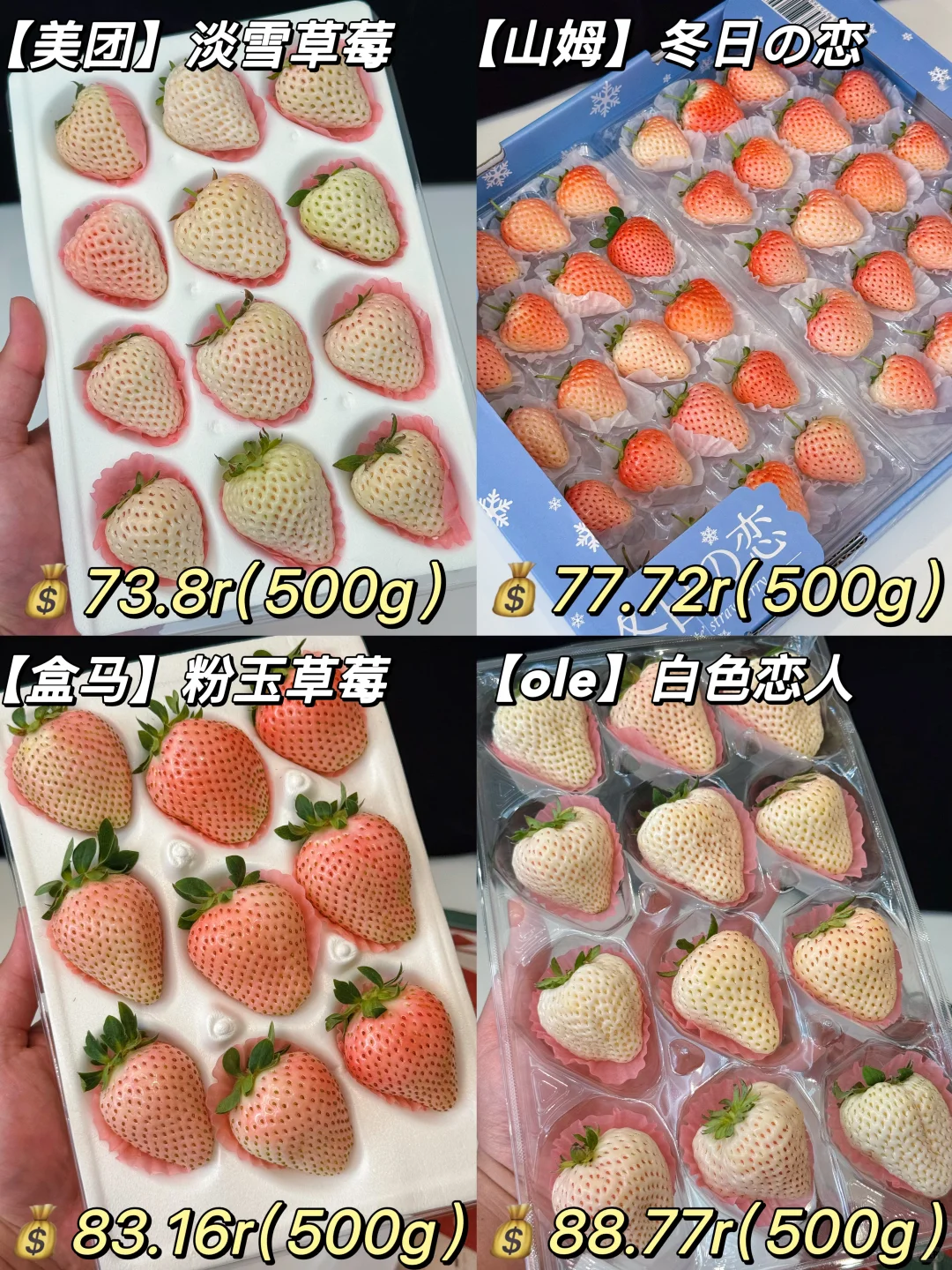 ✅先说结论,4款里面我更推荐山姆跟盒马买的两款,山姆的冬日の恋白草莓价格更低总体性价比狠高,