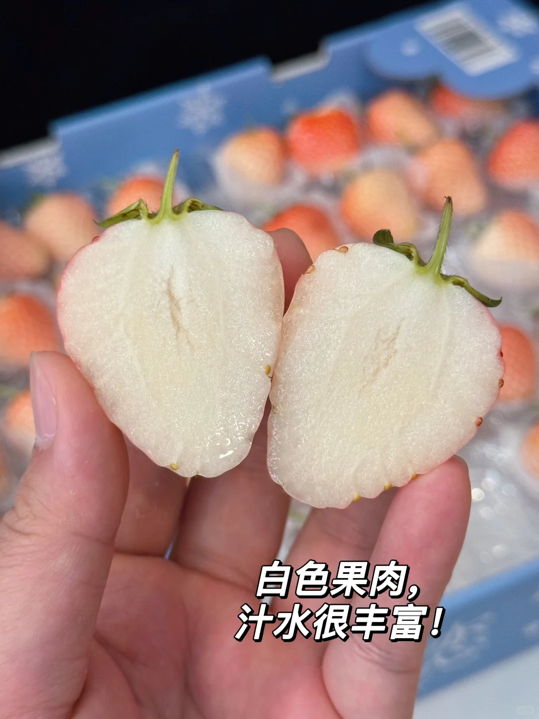 口感味道:草莓味很浓郁,3分酸7分甜,汁水很多,白色果肉,口感细腻扎实