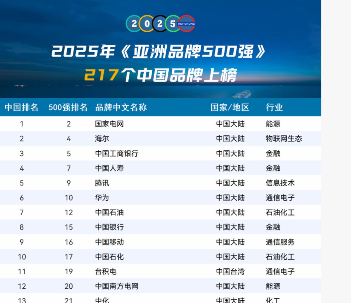 会上,主办方世界品牌实验室(WorldBrandLab)发布了2025年(第二十届)《亚洲品牌500强》年度报告,共有20个国家和地区的超级品牌入选。