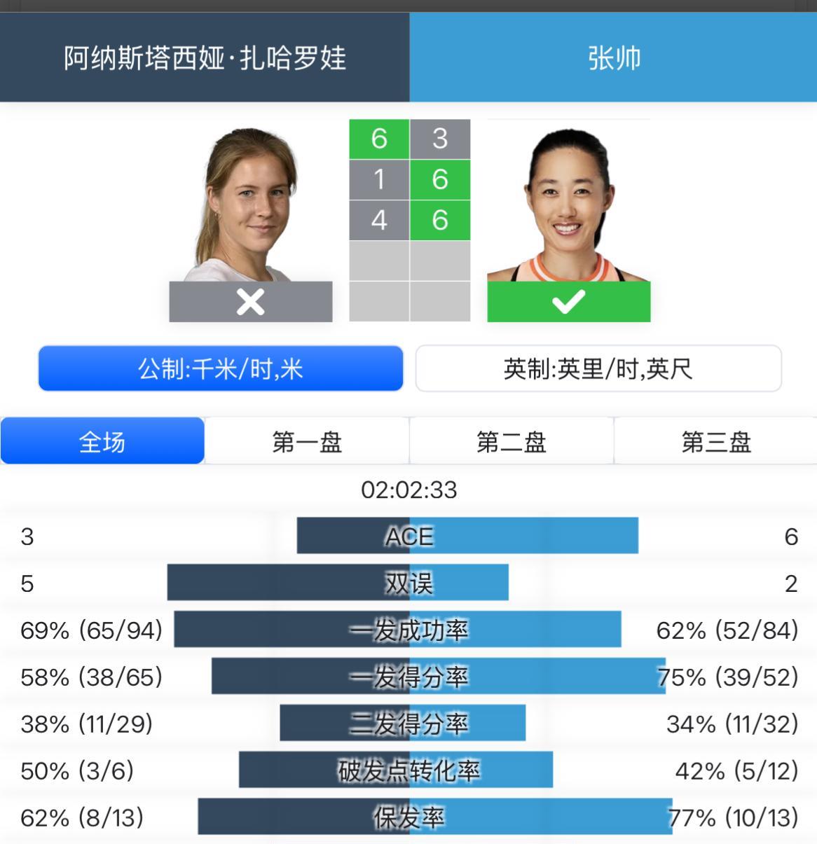 恭喜张帅反败为胜!3-66-16-4逆转资格赛选手扎哈洛娃,收获开门红。 这