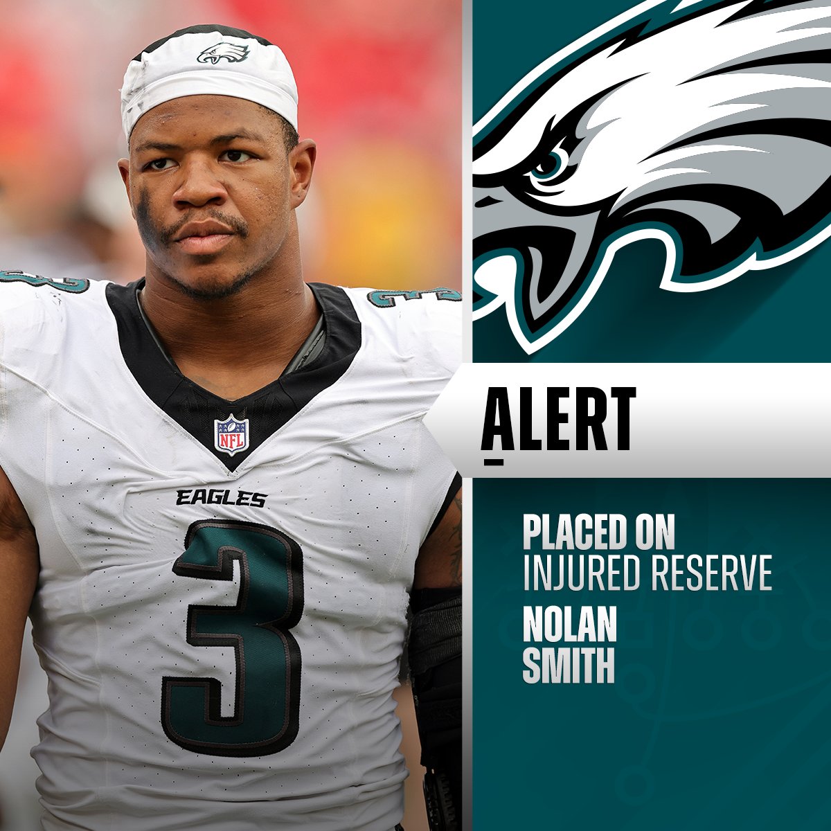 NFL官方X账号发布推文称,老鹰队将外线卫诺兰-史密斯列入伤病储备名单。