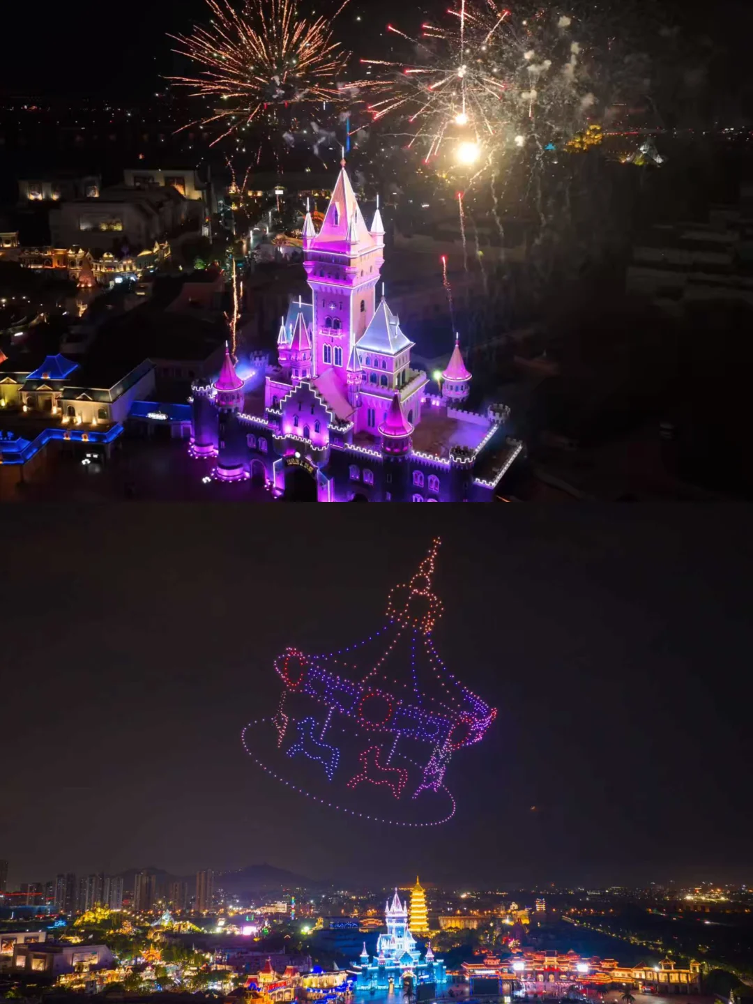 游玩结束记得前往方特广场观看“盛世狂欢夜”限定主题演出!每晚21:00“盛世华诞烟花秀”连放8天!和喜欢的人一起站在城堡前看烟花,仪式感直接拉满!10.06-10.07还有“月满星河”🌌无人机星空秀哦!