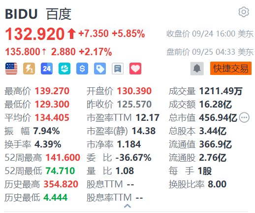 格隆汇9月25日|百度(BIDU.US)盘前涨2.17%,报135.8美元。消息面上,百度旗下自动驾驶出行平台萝卜快跑在阿联酋迪拜举行的第四届世界自动驾驶交通大会上,正式获颁迪拜首张自动驾驶测试牌照001号,并获准在开放道路提供Robotaxi试乘服务。根据公开资料整理,9月24日至25日大会期间,萝卜快跑是唯一被允许在迪拜公开道路进行试乘体验的公司。(格隆汇)
