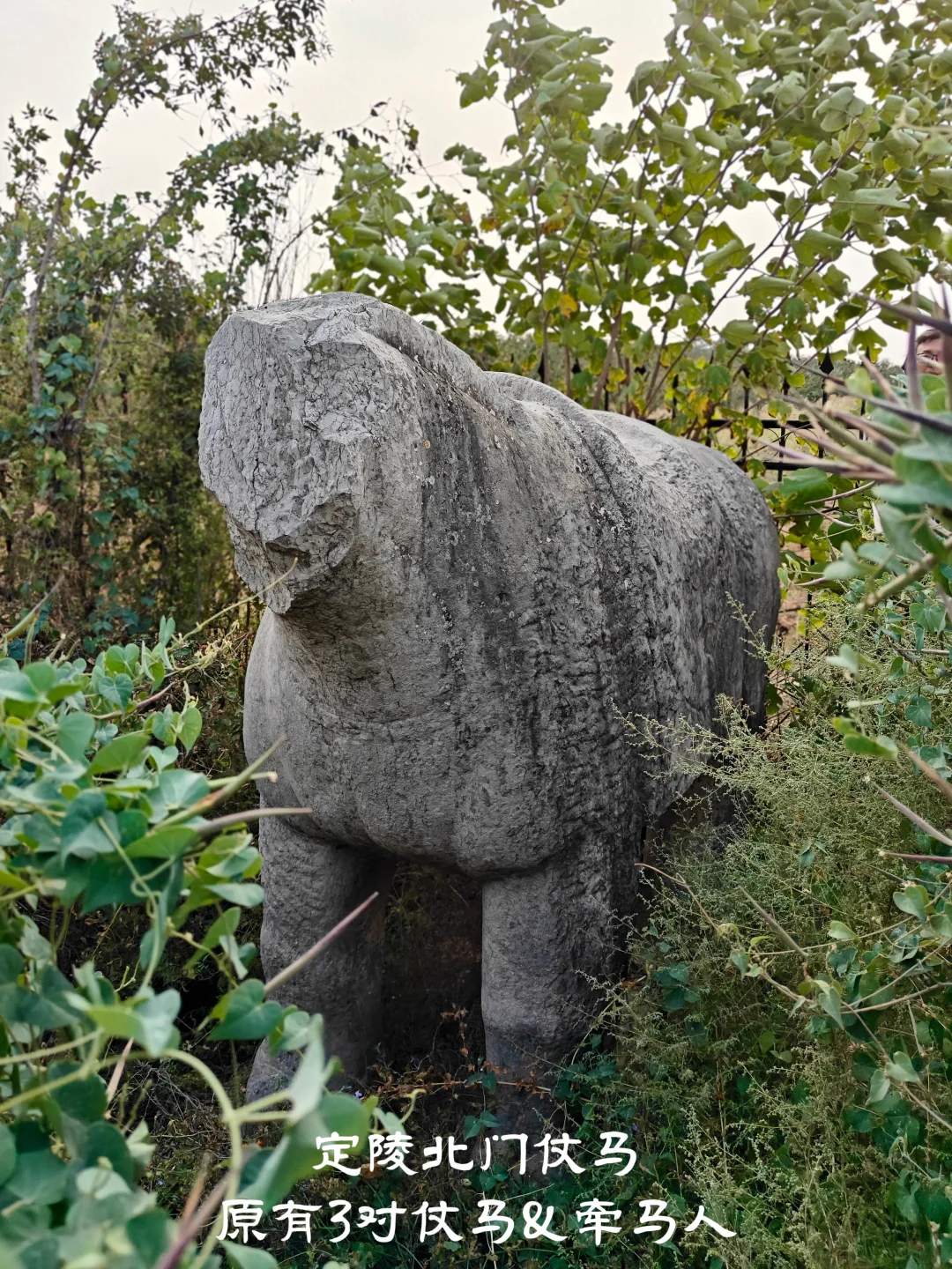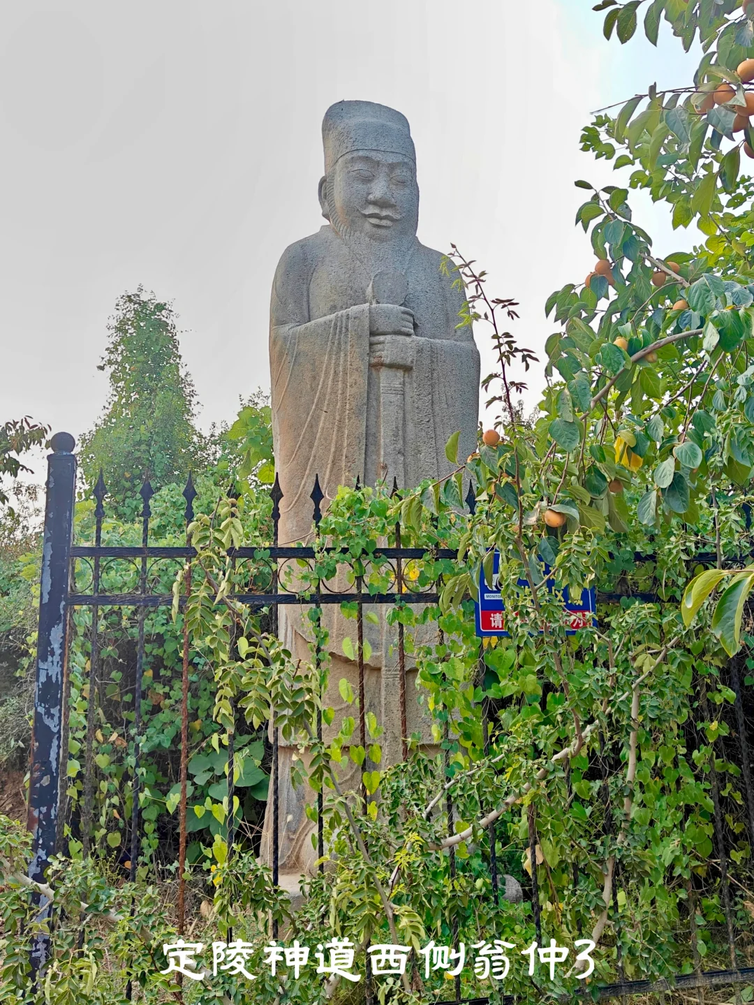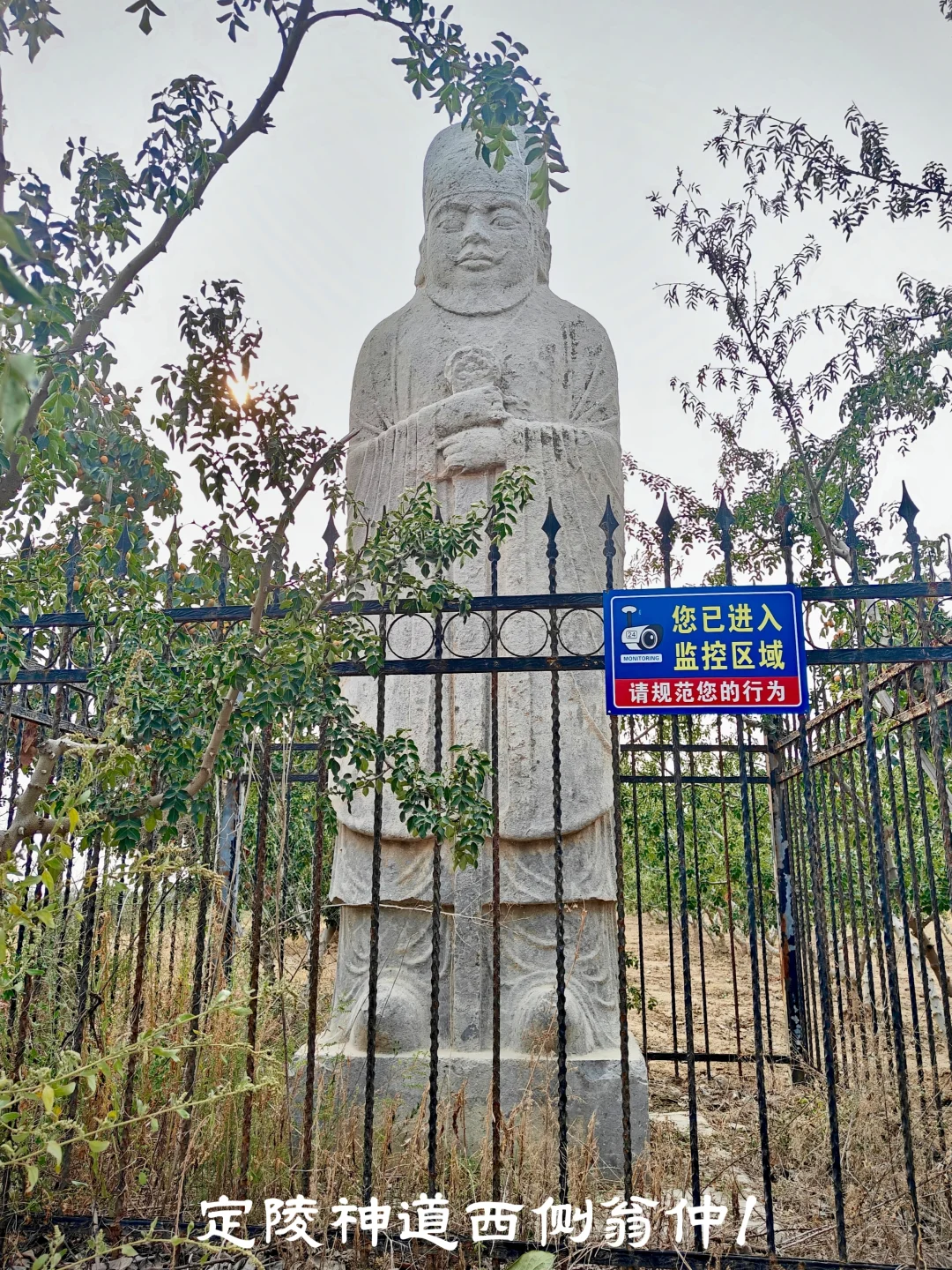 自乾陵之后,诸唐帝陵南门神道石刻自南向北依次为:石柱华表、翼马、鸵鸟、仗马&牵马人5对和翁仲10对,现定陵地表神道石刻仅存4尊翁仲,其余石刻或埋地下,或被毁。