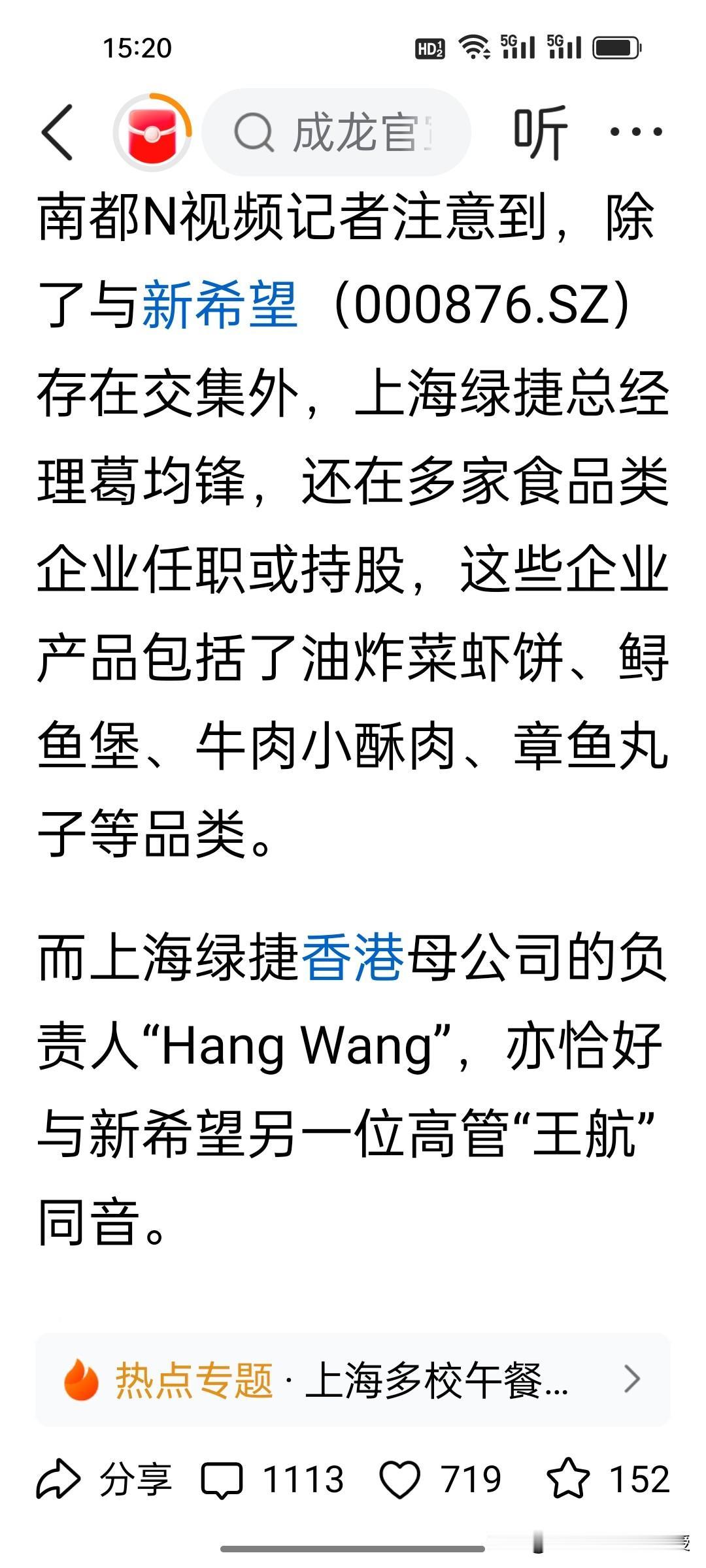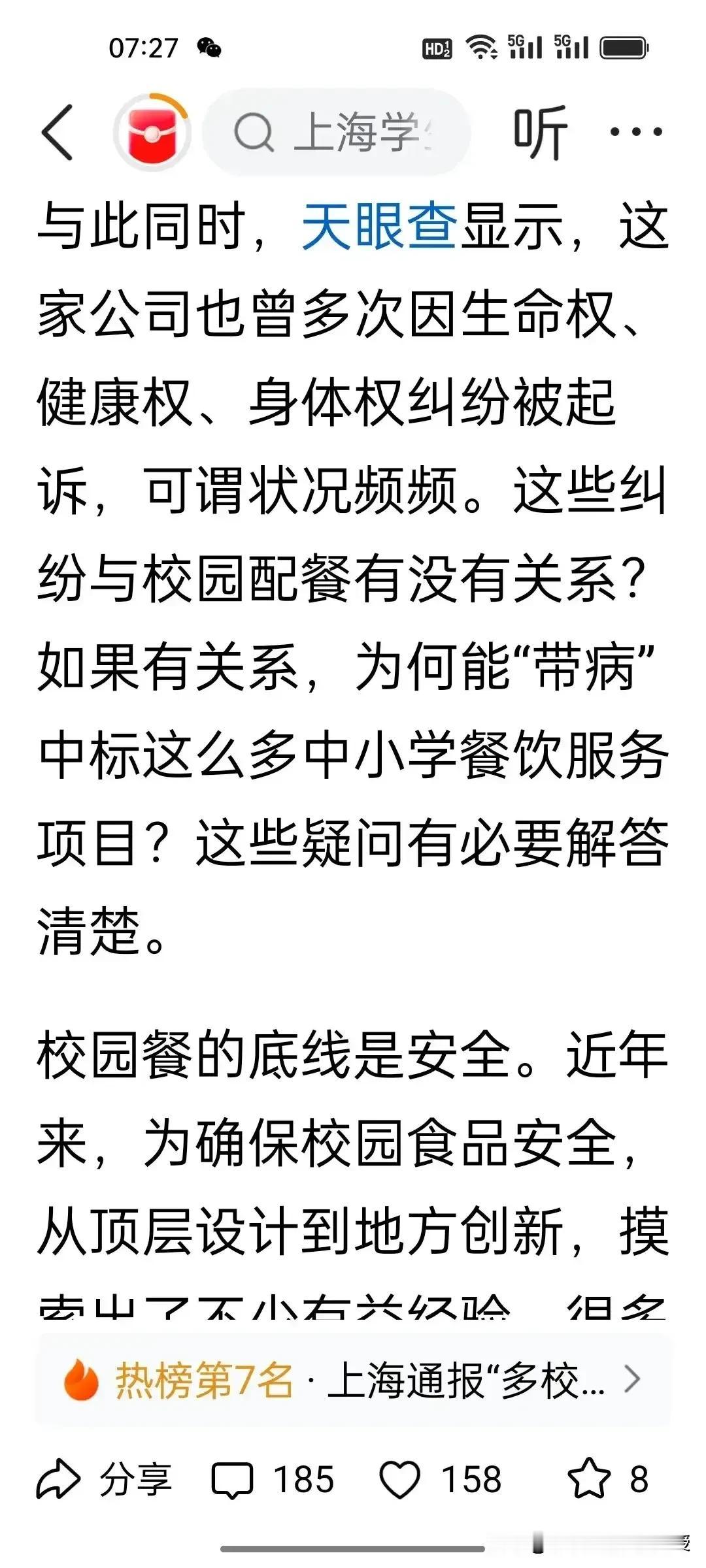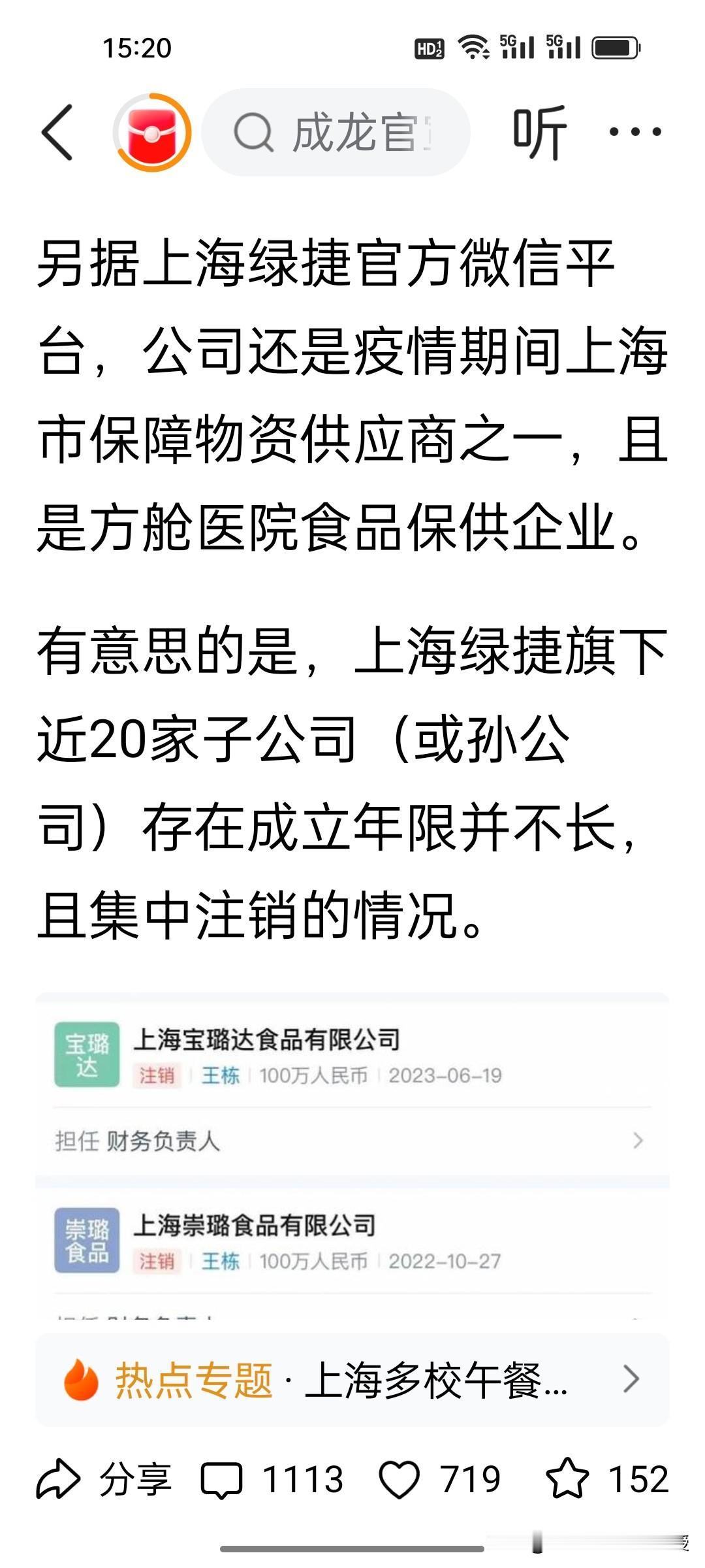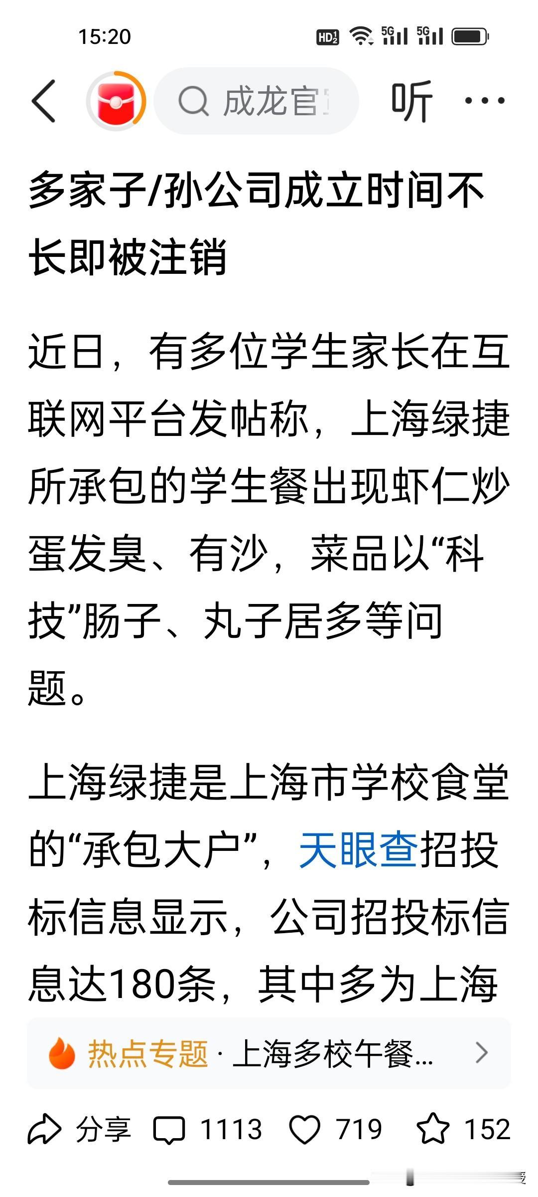 《南方都市报》记者把绿捷公司查了个明明白白!不得不佩服《南方都市报》的记者,确实是敬业,探究真理的精神可嘉,拨开云雾,找到了绿捷公司相关及负责人的行业版图,《南方都市报》这是干了检察机关干的活啊! 现在上海市教委已经联合公安机关将绿捷“臭虾仁午餐”事件彻底调查,究竟会不会“牵出萝卜带出泥”,还很不好说,毕竟能日供50万中小学生餐的公司确实能量非凡。 现在究竟如何惩处绿捷公司还没定调,前两天绿捷公司惜字如金地发了47个字的道歉信,《新华社》及《新京报》二问绿捷公司,在第一时间都围绕着“屡遭投诉屡中标”这个核心问题,希望各部门要查清楚,这也是接下来随着案件调查水落石出后必须要向上海的家长们交代清楚的关键。