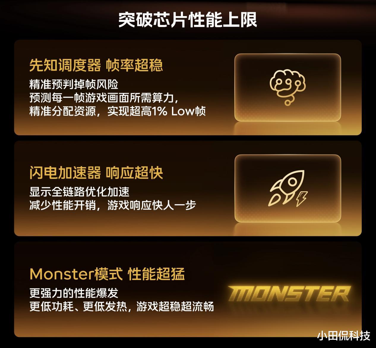 日常使用中,Monster超核引擎的先知调度器就像你的“性能管家”,能精准预判每一个应用的算力需求,无论是多任务切换还是大型APP启动,都能提前分配资源,让帧率超稳,再也不用担心刷视频时突然掉帧、回消息时界面卡顿。而闪电加速器则负责显示全链路优化加速,减少性能开销,让你在滑动屏幕、打开相册时,响应速度快人一步,操作丝滑如德芙。