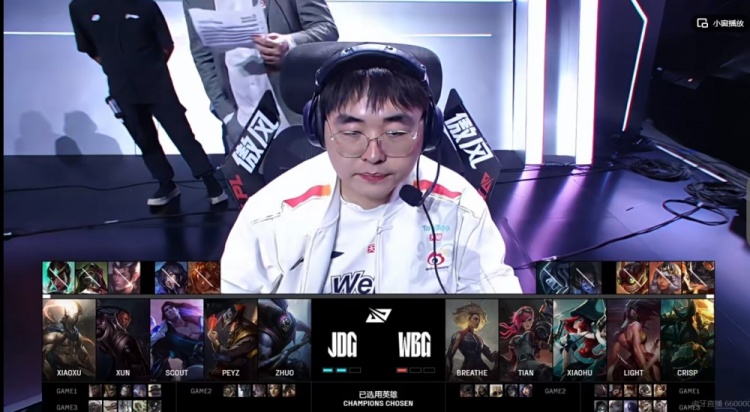 WBG:上单Breathe、打野Tian、中单Xiaohu、下路Light、辅助Crisp