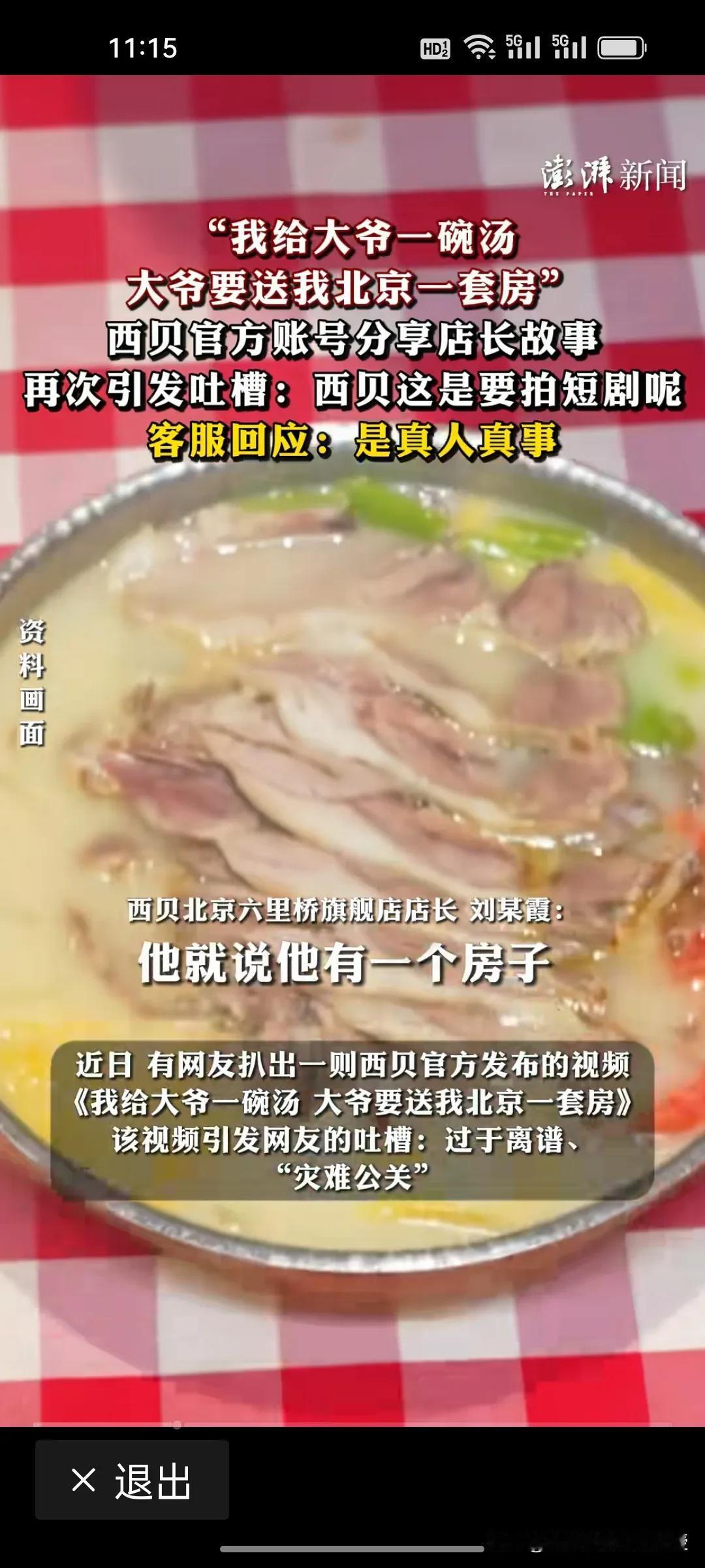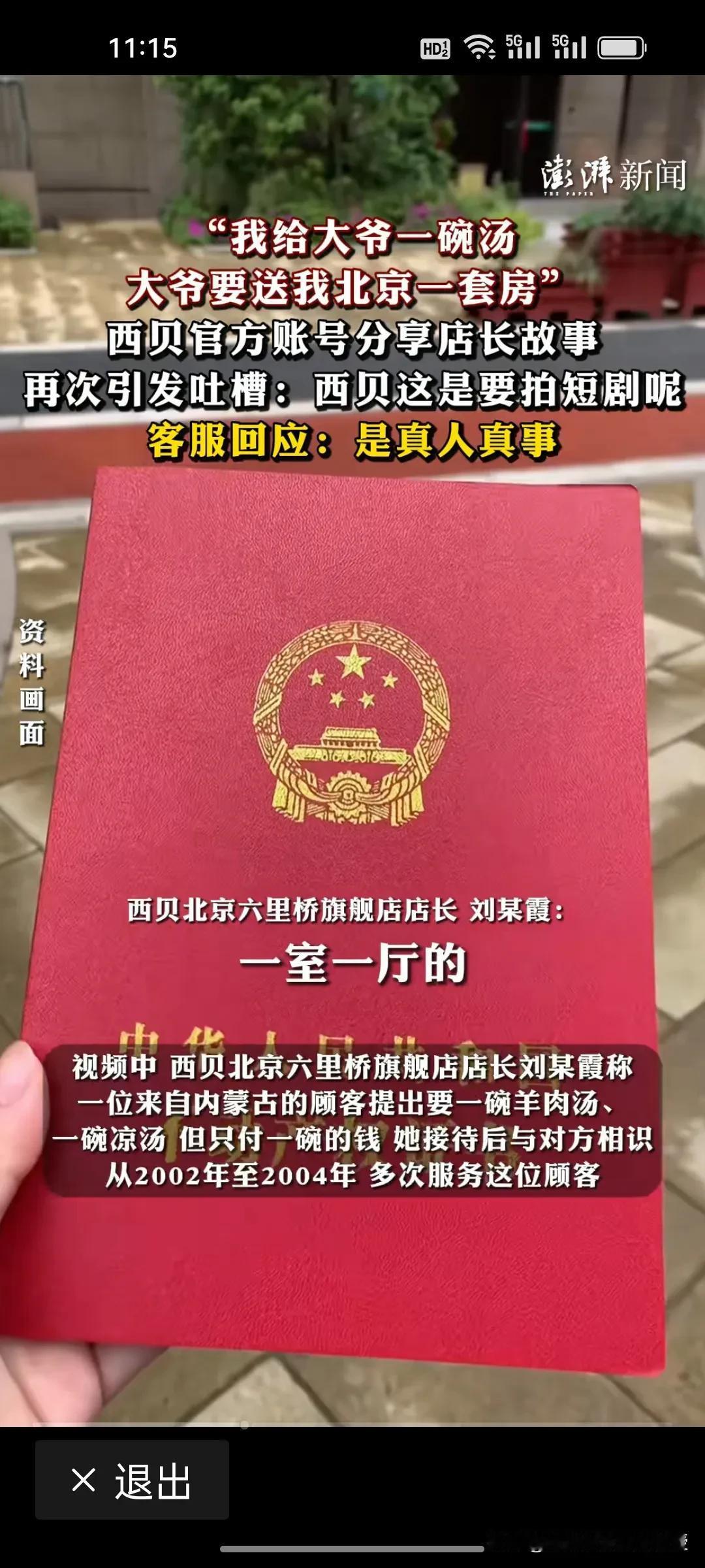 西贝一位店长多次热情服务一位大爷,大爷竟然要送房?这还是真事。根据《澎湃新闻》报道,西贝北京六里桥旗舰店店长说自己多次服务一位大爷,这位大爷要去养老院,要把一室一厅的房子送给这个店长,店长拒绝了大爷的好意。 西贝发文想表达的意思是,西贝的服务周到,感动的老大爷都要送房,但是网友不买账啊,说西贝这是灾难式公关,要拍短剧呢。这跟前两天七岁的毛毛以为要吃不到西贝了,简直是异曲同工之妙啊!不知道这些文案是不是华与华给指导的。 西贝能不能请个专业的公关团队,不要靠发煽情文感动消费者,而要是要实实在在地服务消费者,“货真价实,价廉物美”才是最真诚的表现。西贝现在只要解决的痛点就三个:食材新鲜,现炒现卖,标注预制菜。