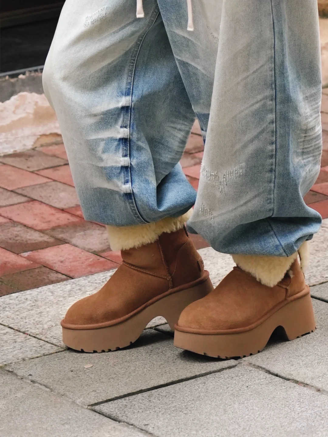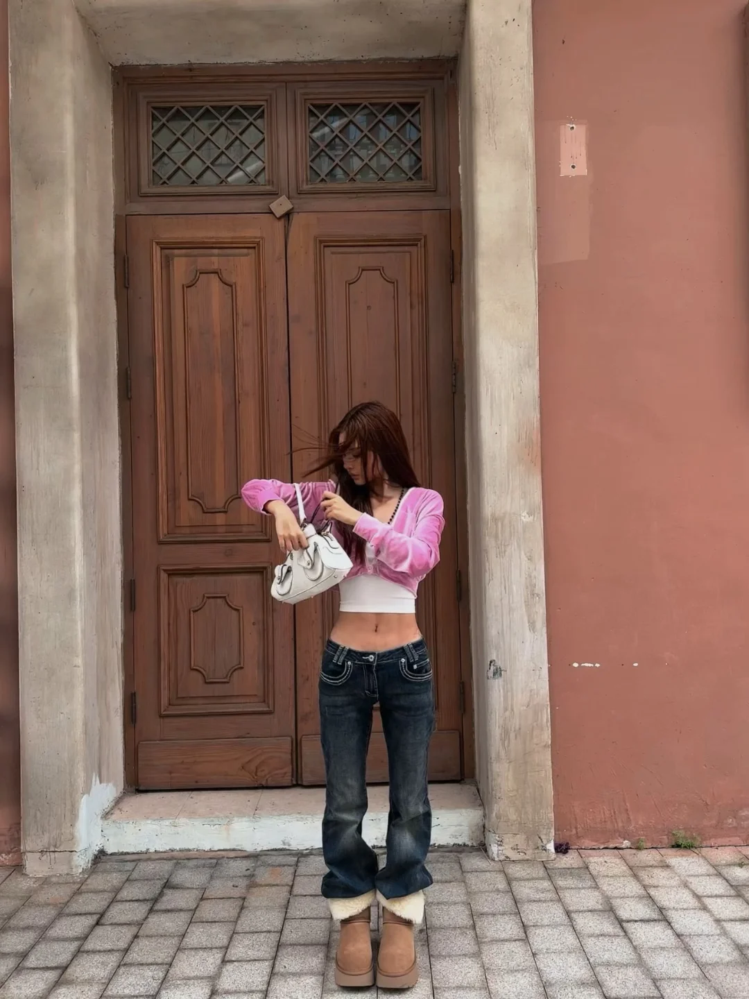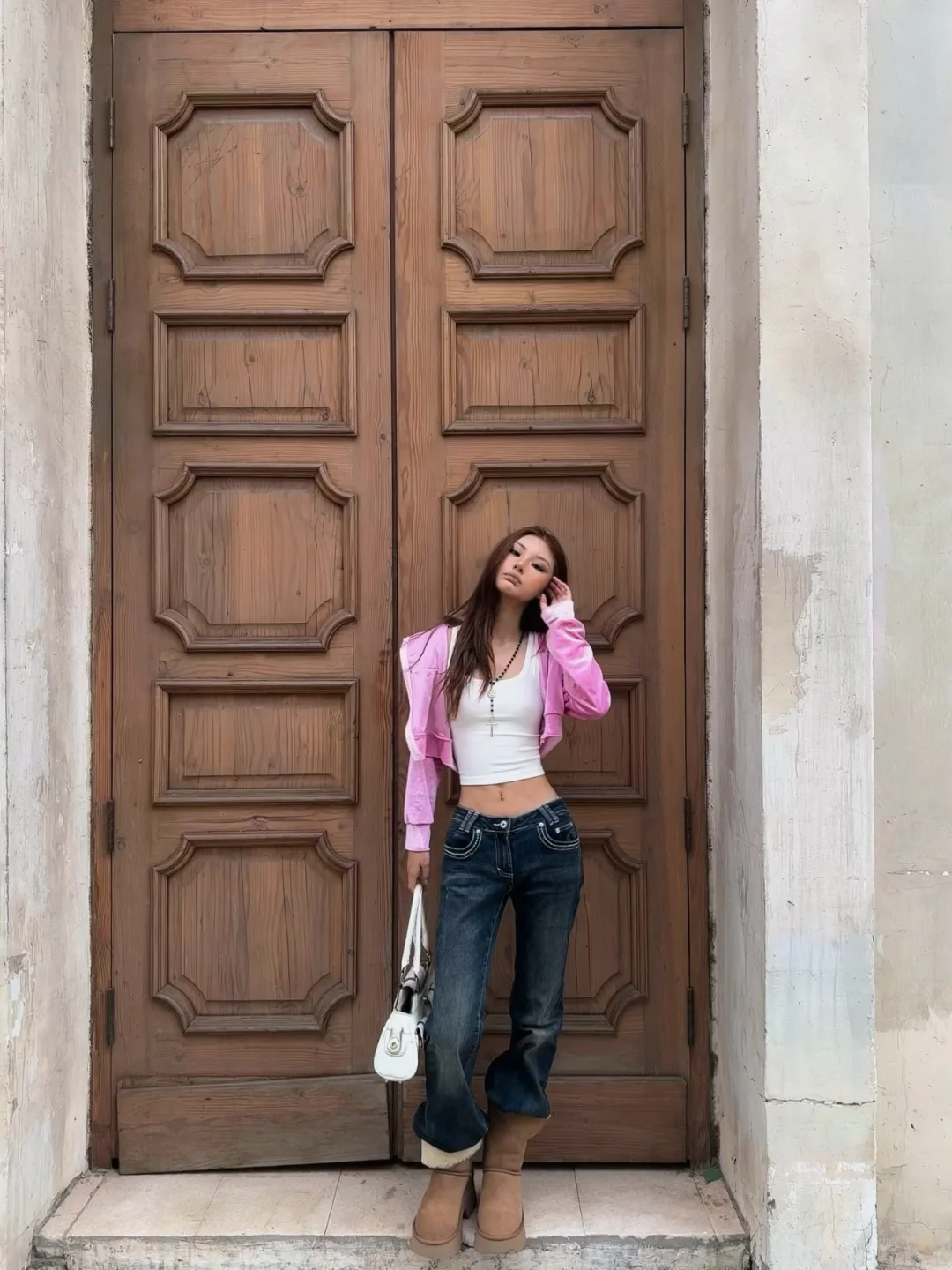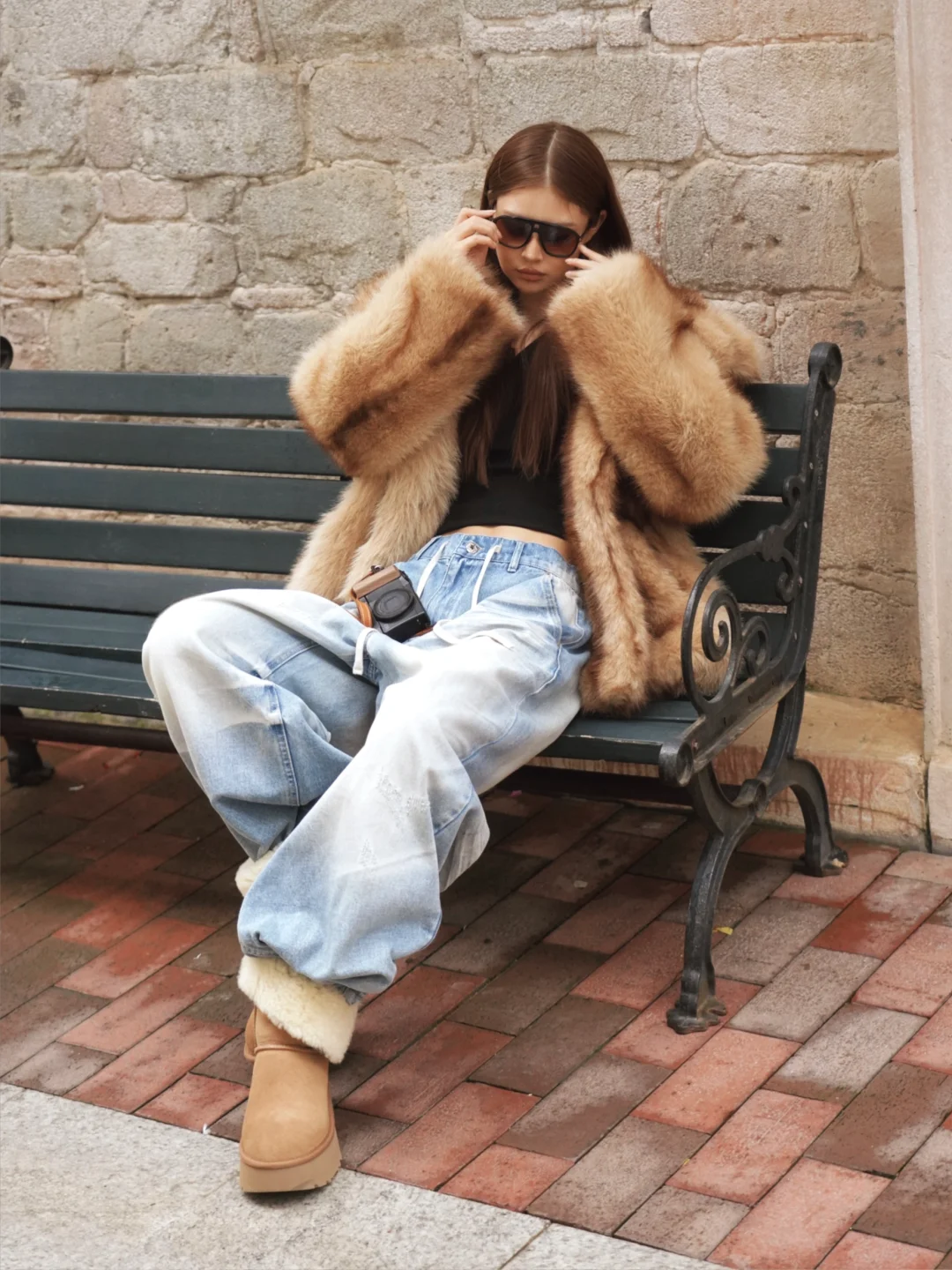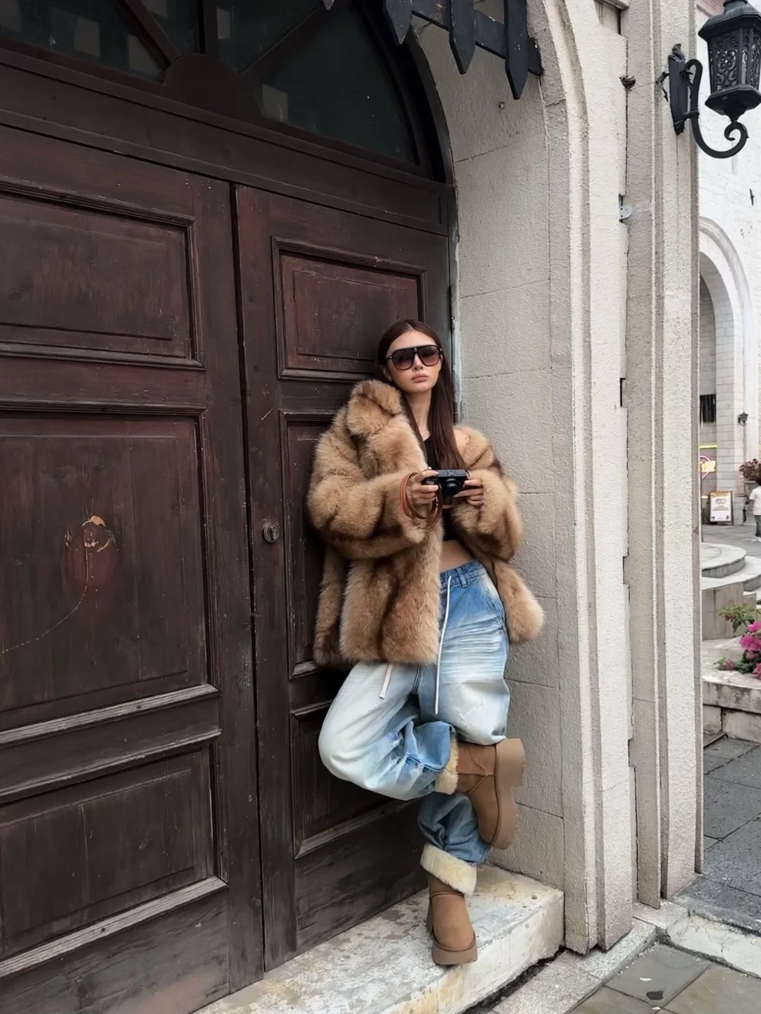 翻遍ins潮流风向,发现Z世代混搭讲究“简约藏细节”。轻奢琥珀系毛毛外套搭休闲的背心和阔腿裤,再踩双厚底UGG,平衡了精致与随性。配上利落直发,松弛感直接拉满,完美适配“要时尚更要舒适”的需求