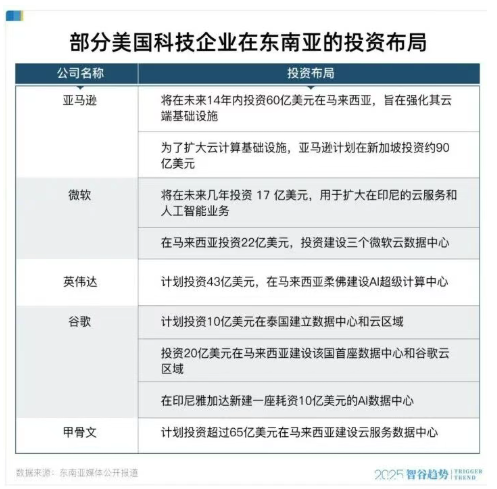 美国企业持续向这里砸入巨资(亚马逊投资200亿美元、微软40亿美元、英伟达43亿美元、谷歌40亿美元),大力建设云和人工智能基础设施。