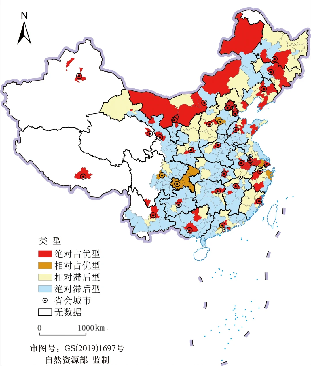 [三R]高学历劳动力占绝对优势和相对优势的城市有72个,所占比例为24%,主要集中分布在内蒙古及东北地区、东部沿海地区的几大城市群及内地省会城市。内蒙古和东北地区资源丰富,部分资源型城市工业发展态势良好,资本及技术密集型工业占重要地位,凭借其提供的充足技能型就业机会吸引了大量高学历劳动力。如包头、鄂尔多斯、大连资本及技术密集工业从业人员,集聚了大量高学历劳动力。沿海地区尤其是山东半岛、长三角、珠三角城市群以及内地省会城市经济发展迅速,就业机会丰富多样,城市基础设施和公共服务等舒适物水平相对较高,也吸引了大量高学历劳动力。