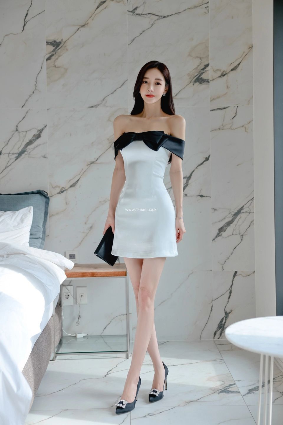 孙允珠:皎白流光黑蝶结时尚派对短裙