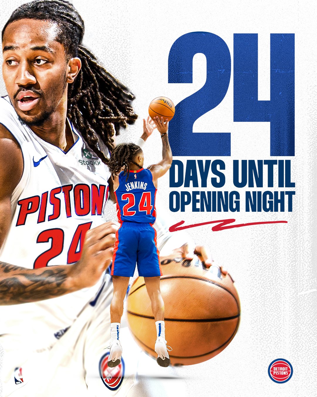 虎扑09月28日讯今日,活塞社媒晒出达尼斯-詹金斯身披24号球衣的个人海报,并配文: