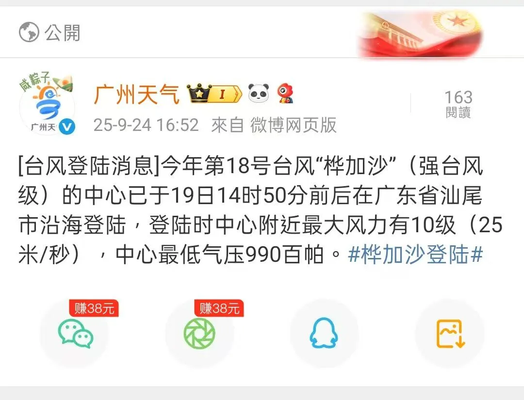 最终中央气象台给出了13级的登陆强度。但是根据实测风速来看,绝对不止13级阳江的破坏性非常严重。有没有阳江当地的朋友发一下当地的图片和破坏?根据数据来看,登陆时强度应该在14~15级。登陆时的气压在947帕左右。中央气象台在这次台风预报中屡次将路径东调,西调。共进行过5次大调整。并且在今天对台风中心的定位有很大的差异。同时这次只发布了台风橙色预警,国家级红色预警没有发布,这是让人很不理解的。另外根据规定14级以上就要发布红色预警。所以是否是因为没有发布红色预警,所以才在登陆的时候注意把等级压低呢?台风 台风来了 台风来啦 台风桦加沙 另外还不得不提广州天气的低级错误。这个登录信息发的是什么玩意?