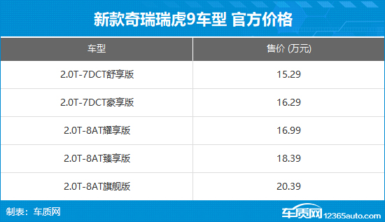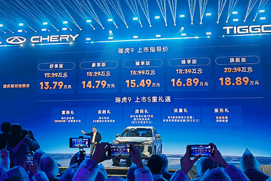 9月27日,新款瑞虎9正式上市,共推出5款车型,售价区间15.29-20.39万元,国庆假期抢鲜价13.79-18.89万元。同时,购车还可以享受包括置换礼、金融礼、质保礼、流量礼和服务礼在内的购车权益。