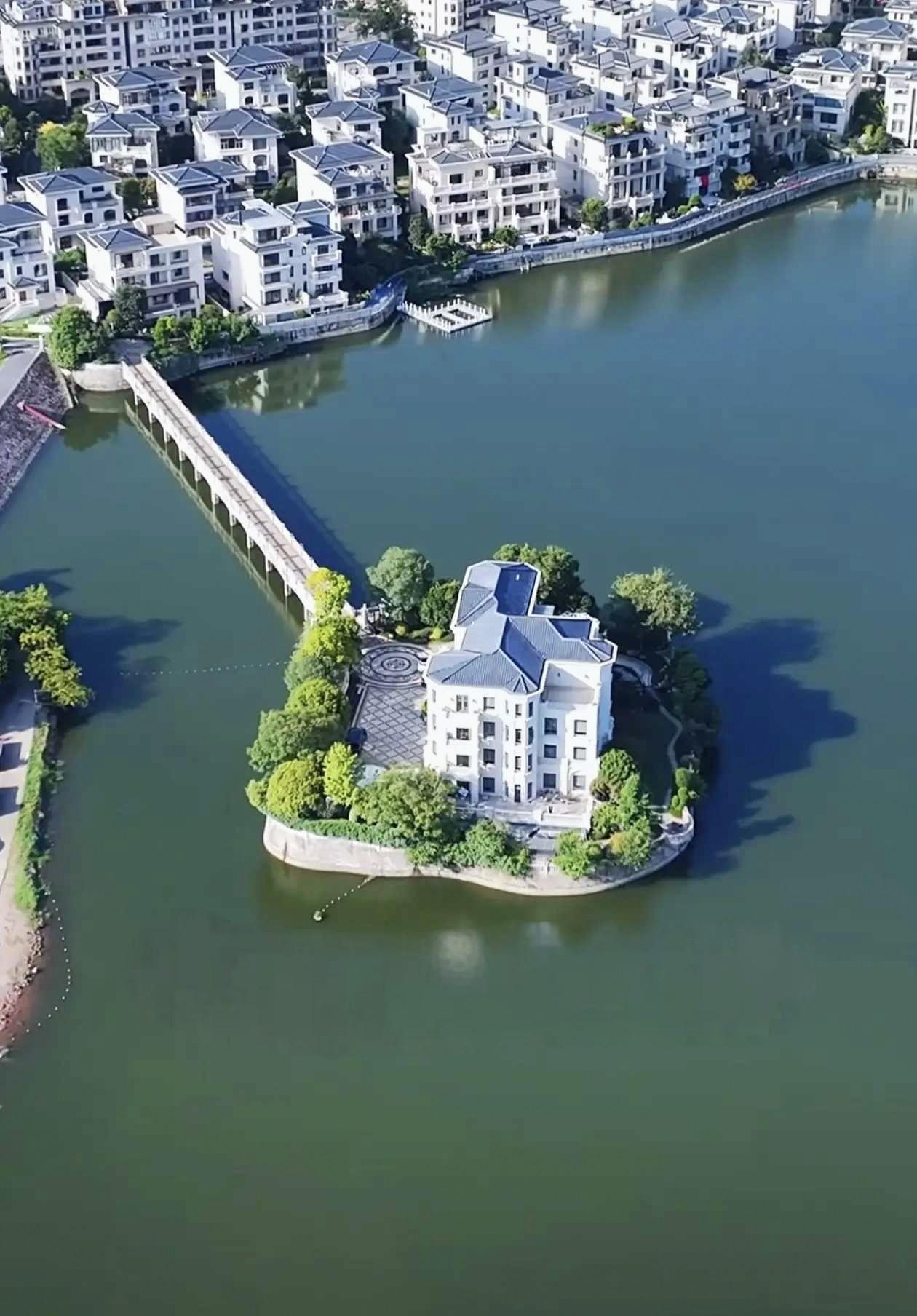 这幢江中独立别墅,四面环水,空气清新,与左邻右舍没有任何纠纷;住在里面的人关系人脉不一般吧!#湖边上的别墅#
