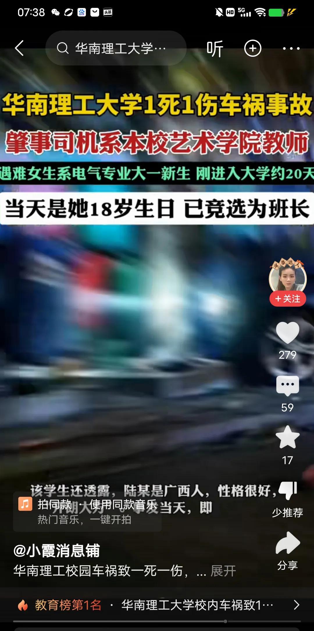 惋惜!花一样的年龄,就这么过早凋谢了,为什么校园里开车还那么快呢?如果慢,大概率不会出事故。欢迎大家留言文明交流!