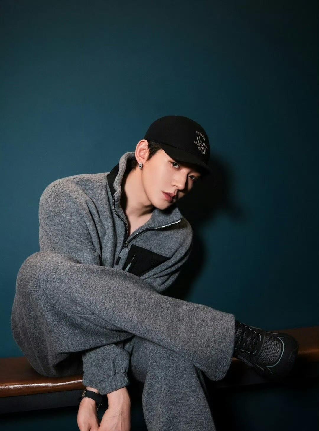 #邓为# 巴黎时装周出发look 灰色全身羊绒套装潮男slay #巴黎时装周#