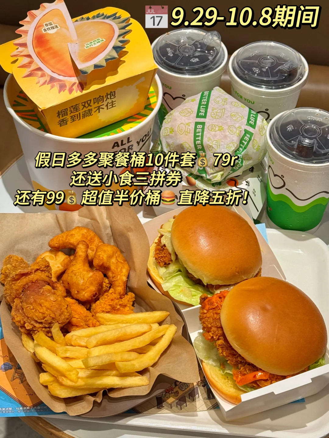 ⏰9.29-11.30期间,榴莲堡➕任意经典堡只要29.9💰