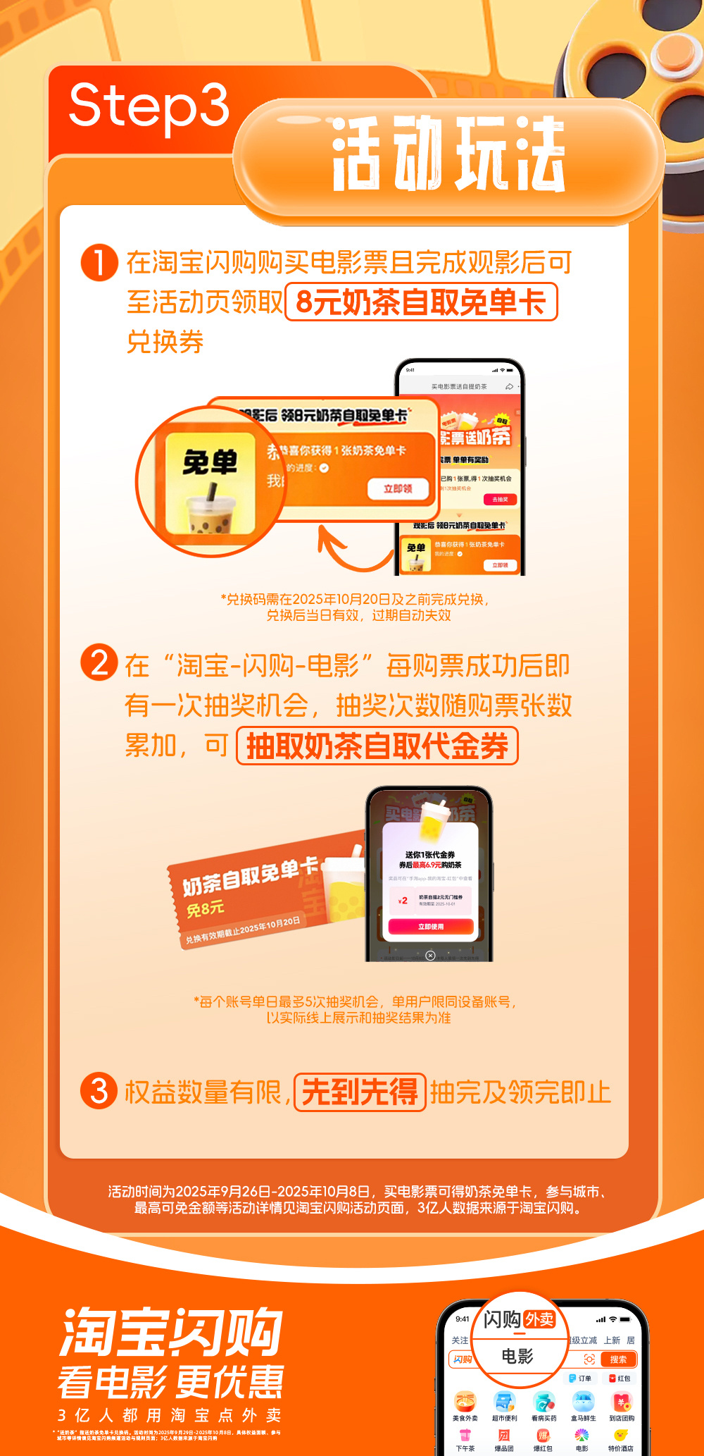 "听说范丞丞在国庆档电影《浪浪人生》为了拍那段龙舟大戏和全员国家队划了整整7天龙舟[跪了]好拼,真的想看了,还有视效大片《刺杀小说家》和动画电影《三国的星空》也是说在技术上认真打磨了很久,国庆出门一趟就该看点这些真诚对观众的付出的片子!国庆对我们真诚的还有 ,上淘宝闪购搜「电影」,参与“买电影票送奶茶”活动,直接上淘宝闪购买电影票还送奶茶免单,淘宝闪购让你放心go,这个国庆出门用淘宝闪购 !