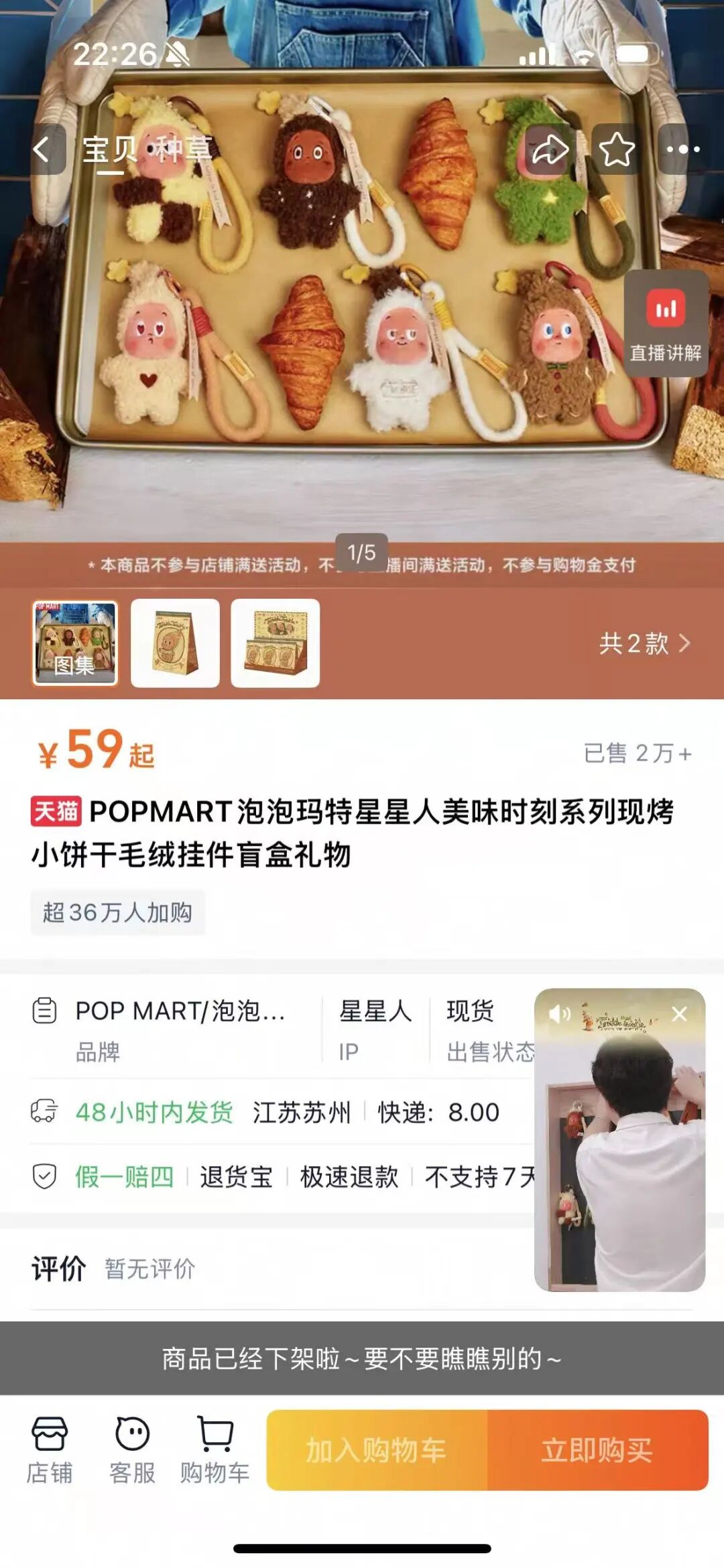 “已经很久很久没有产品在开售前会说卖多少个了,一切以开售情况为准。”正式开抢前,面对诸多关注库存、担心抢不到货的消费者,泡泡玛特天猫官方旗舰店的主播解释道。9月29日晚十点,泡泡玛特“星星人美味时刻系列”线上渠道正式开售,星星人现烤小饼干毛绒挂件和手办盲盒玩具摆件等同时开售。