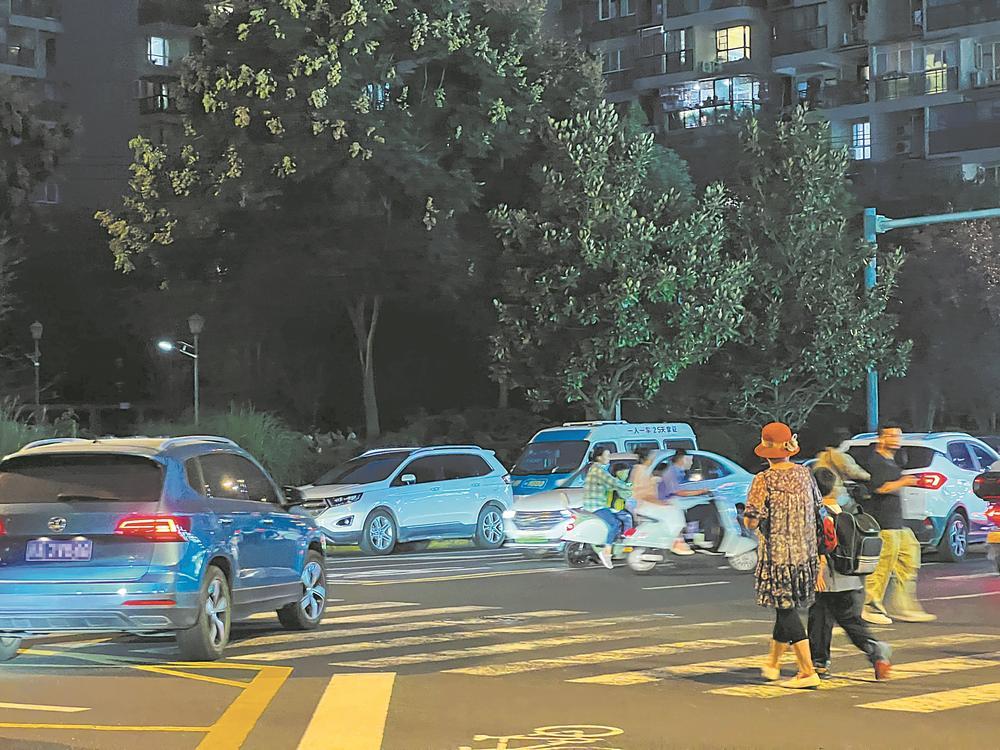 特别是晚高峰时段,放学的孩子和接孩子的家长络绎不绝,电瓶车自行车来回穿梭,外出就餐散步的居民开始越来越多,等待通过的车辆也开始排起了队,人流车流混杂,路口混乱情况加剧。
