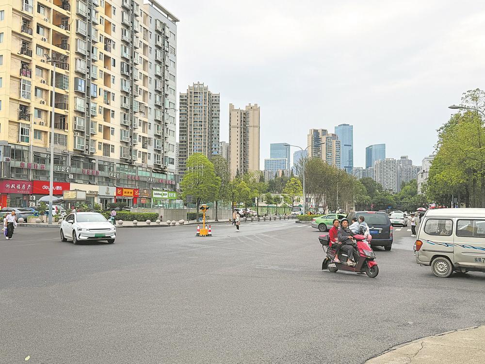 记者在工作日下午5点左右到实地探访发现,该十字路口商圈与居民区交会,紧挨着玉双路地铁站,其周边公交线路发达。因此,在早高峰、晚高峰时段,除了机动车以外,通勤人群、接送孩子的家长及购物的市民也在此来回穿梭。