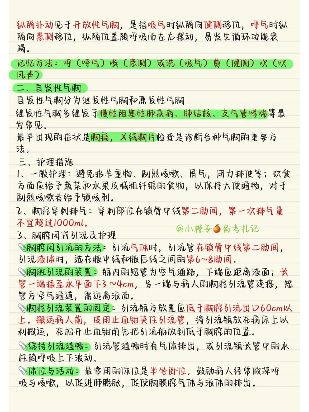 护师 初级护师 护师考试 气胸 自发性气胸 护士 实习护士 内科护理学 内科护理学笔记