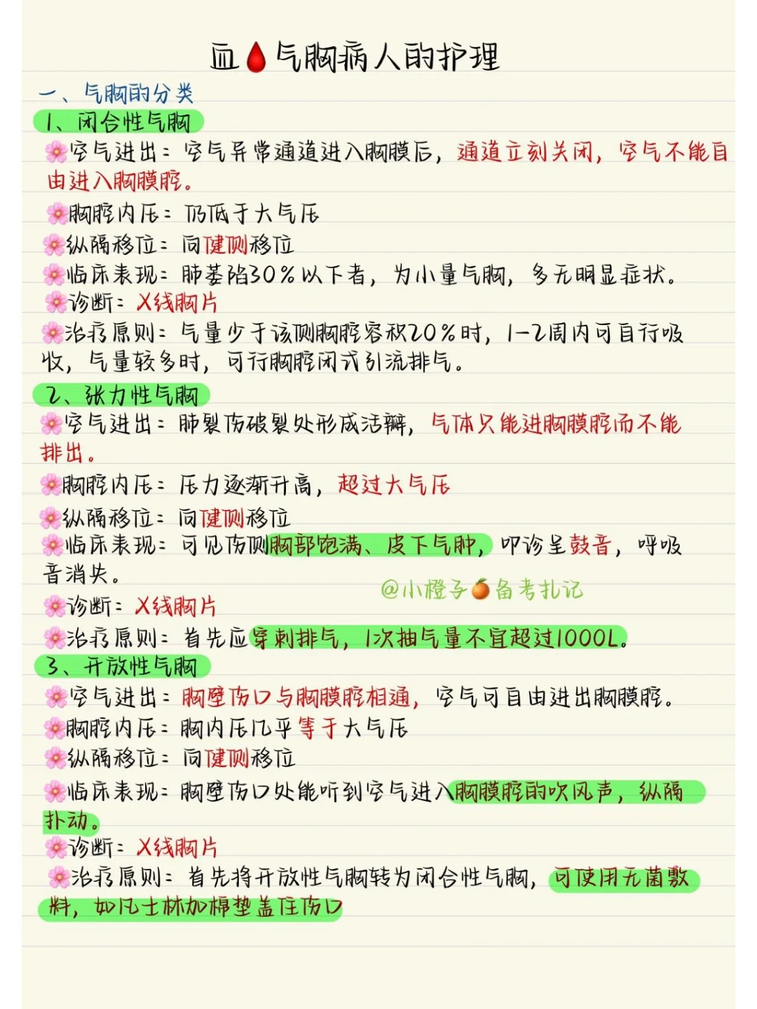 ❤️护理措施:胸腔穿刺、胸腔闭式引流