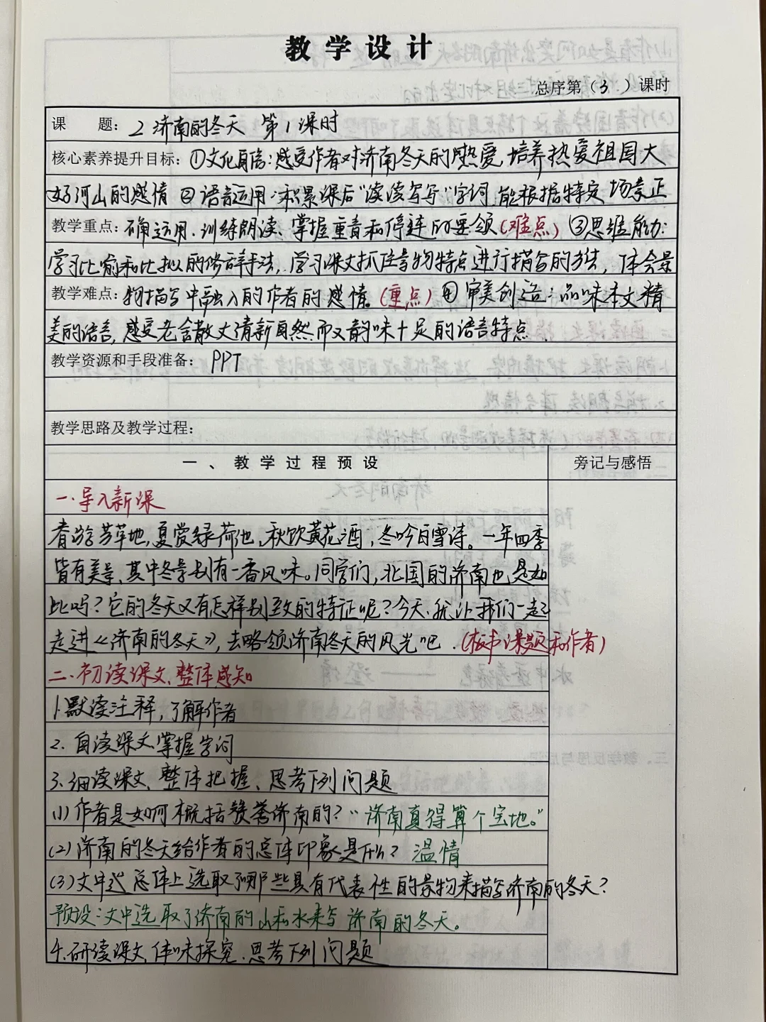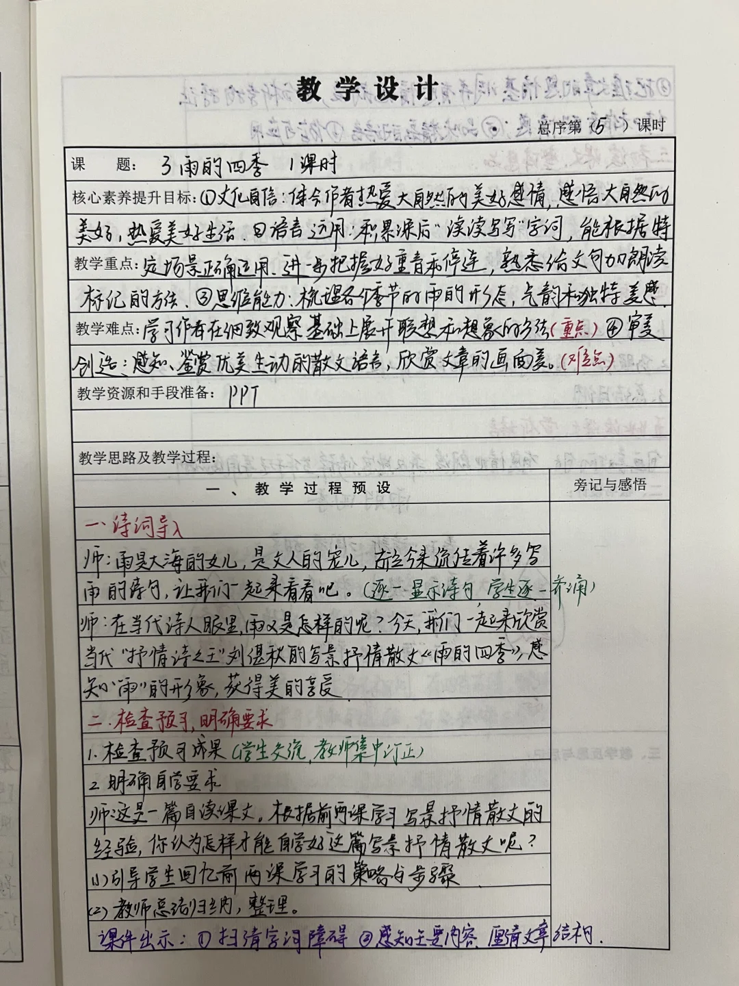 马上开学啦,开学第一周的教案你写好了吗? 《春》《济南的冬天》《雨的四季》《古代诗歌四首》 写作 热爱写作 学会观察