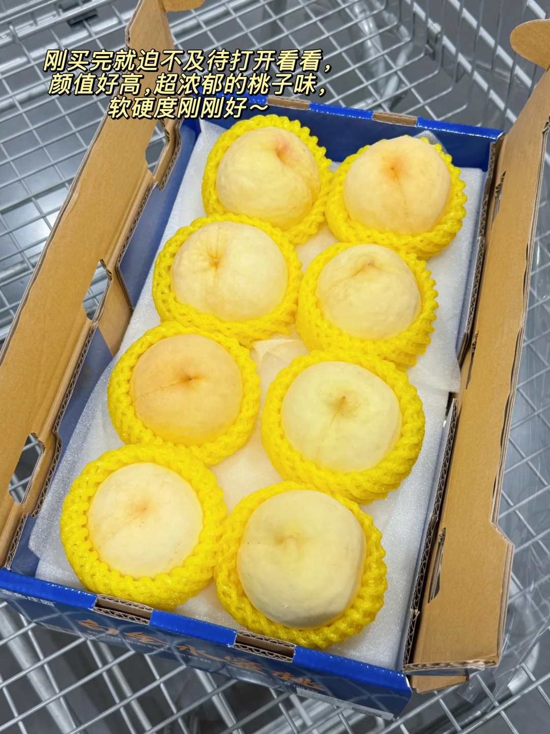 外观大小:都是中大果型,罕见的黄皮肤,粉黄粉黄的颜值很高,打开箱子远远就能闻到桃子味!