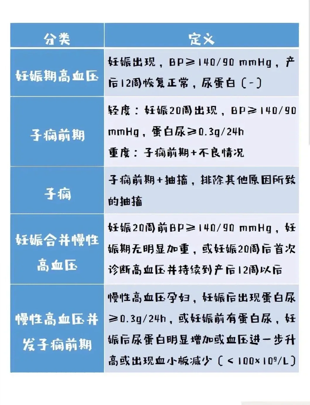 🤰妊娠期高血压疾病是指妊娠与血压升高并存的一组疾病,包括妊娠期高血压、子痫前期、子痫,以及妊娠合并慢性高血压和慢性高血压并发子痫前期。 🤰该组疾病临床表现多样:包括血压升高、蛋白尿、水肿、全身多脏器损害,严重者可出现抽搐(子痫)、昏迷等。 🤰💉基本原则是休息、降压、解痉、镇静、密切监测母儿情况,适时终止妊娠。