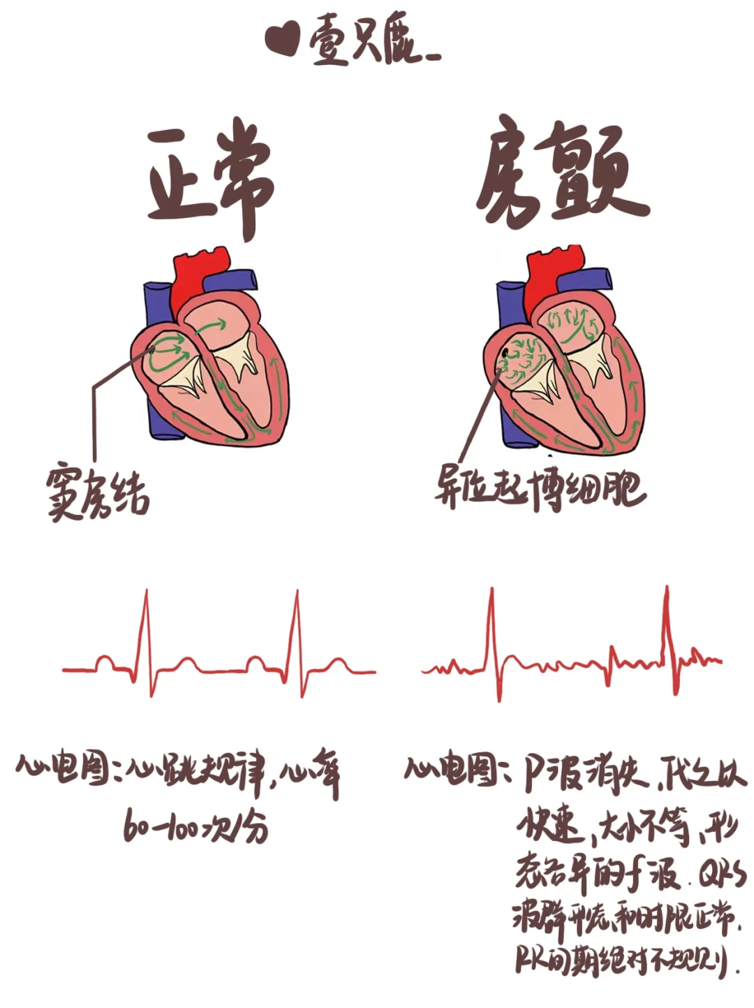 📍📍心房颤动简称房颤,是一种常见的心律失常,是指规则有序的心房电活动丧失,代之以快速无序的颤动波,是严重的心房电活动紊乱。 📍📍临床表现为心悸、眩晕、胸部不适、气短。房颤时心房丧失收缩功能,血液容易在心房内淤滞而形成血栓,血栓脱落后可随着血液至全身各处,导致脑栓塞(脑卒中)。 📍📍💉恢复窦性心律、控制快速心室率、防止血栓形成和脑卒中。