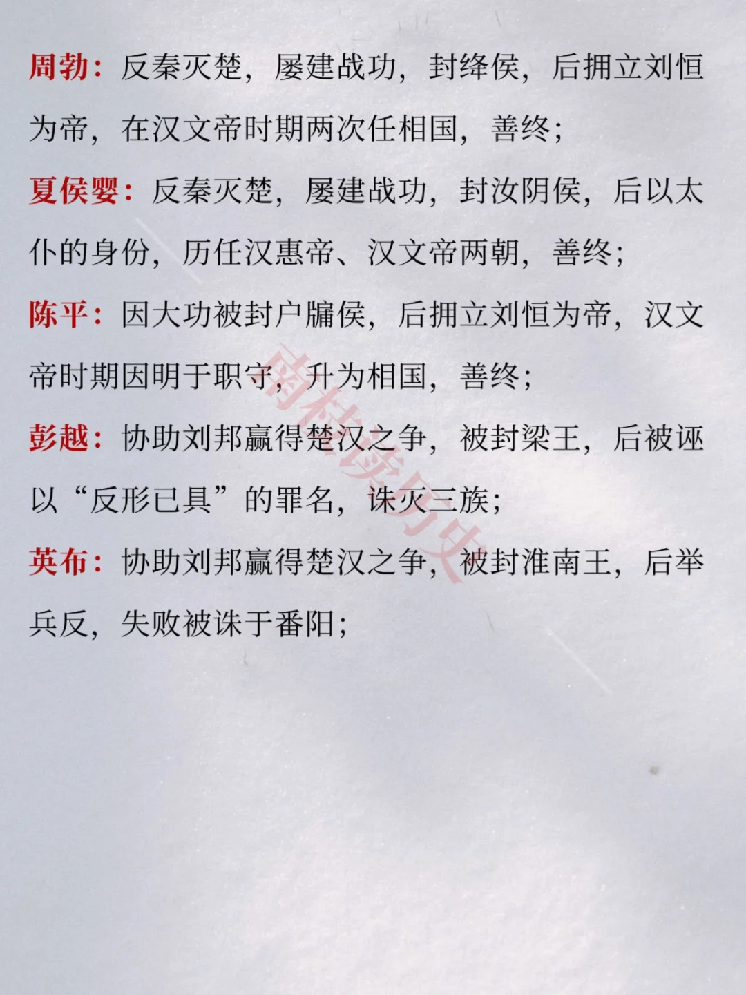 💡刘邦麾下的十大功臣,后来结局都怎么样了? ✅刘邦在对待功臣上持两种态度,一种是威胁不大或识时务的功臣,基本都能善终,比如张良、萧何等人,一种是手握兵权、威胁大的功臣,结局都难以善终,比如韩信,彭越等人; 🔥值得一提的是,在鸿门宴救刘邦的樊哙,差点也没能善终,原本刘邦并不想动他,但奈何樊哙没有摆正自己位置,他娶了吕后的妹妹,偏向于吕后一脉,引起了刘邦的不满和忌惮,所以曾派人要处斩樊哙,但没有成功,让其逃过一劫。