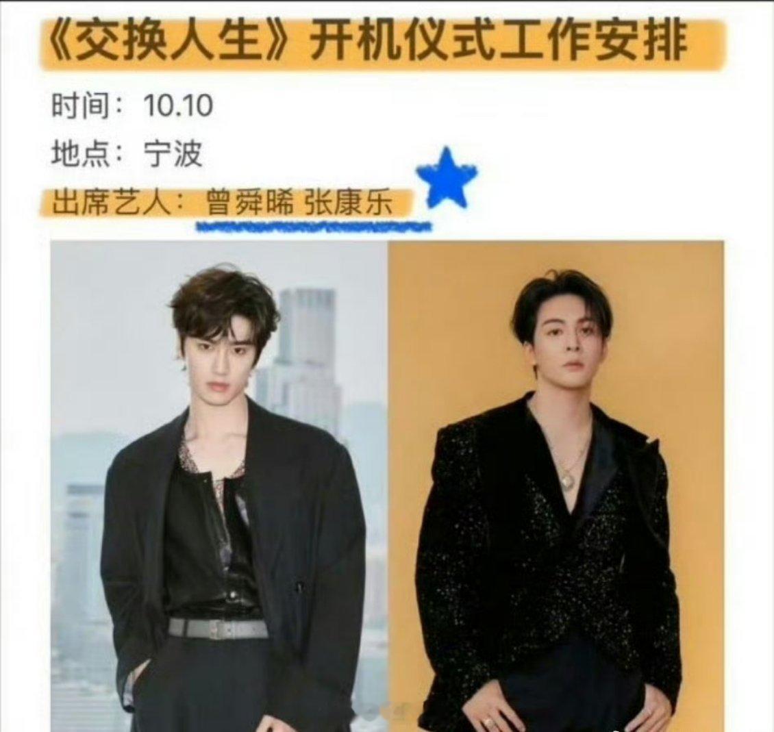 曾舜晞和张康乐的《交换人生》 国庆后开机 又是一部双男主剧?