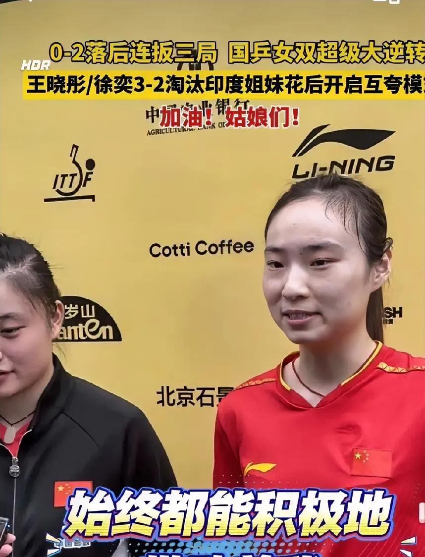 王晓彤昨天赢了长崎美柚,今天就给了自己一巴掌! 王晓彤对自己要求太高了。今天对阵汉娜高达,丢分后懊悔不已,毫不犹豫的顺手给了自己一巴掌!随后一鼓作气,拿下了汉娜高达晋级16强! 王晓彤这次是赚了,世界排名43位,先“灭”了世界排名14位的长崎美柚,不丢一局!后击溃了世界排名25位的汉娜高达。双打搭档徐奕实现超级大逆转成功晋级16强,第一次参加中国大满贯,就获得了非常好的体验。这可是花钱都买不来的。